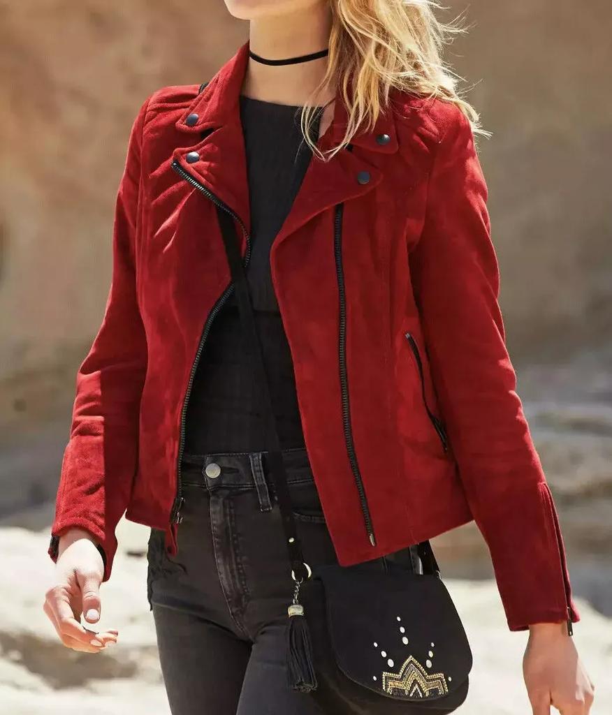 НОВАЯ кожаная замшевая женская куртка ручной работы из красной овечьей кожи для вечеринок — купить товар онлайн с бесплатной доставкой по всему миру!