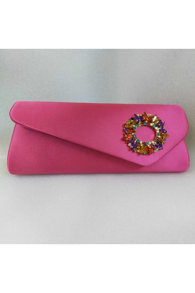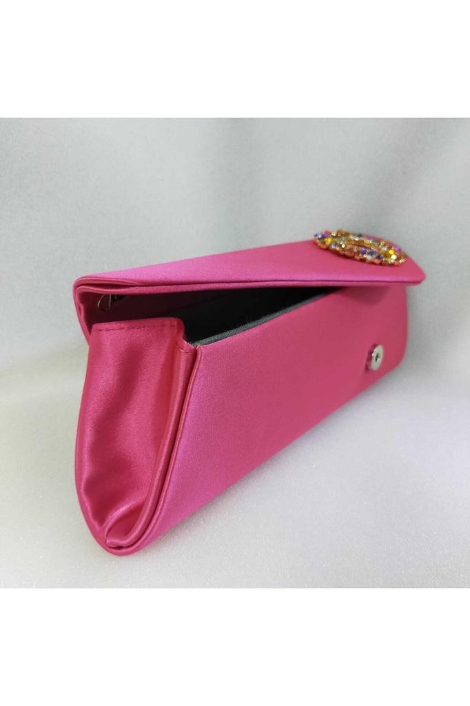 Women's Stylish and Useful Evening Dress Bag Shiny Fuchsia Satin Colored Stone Evening Bag
