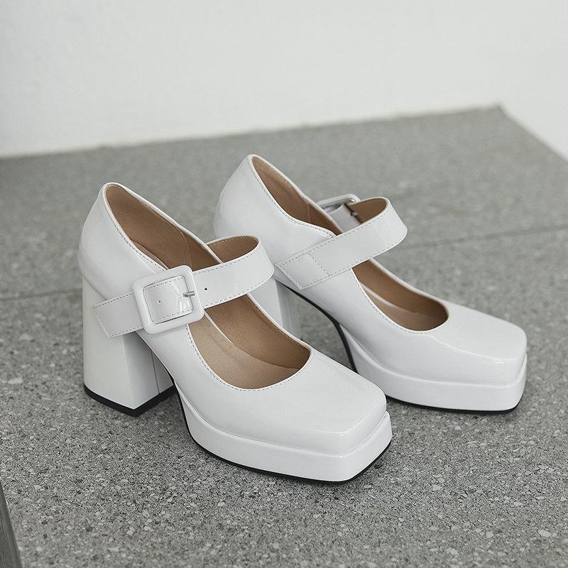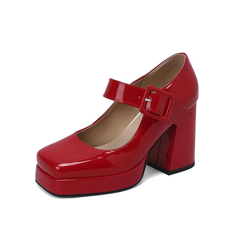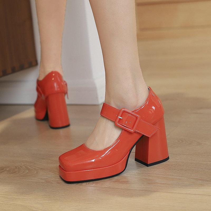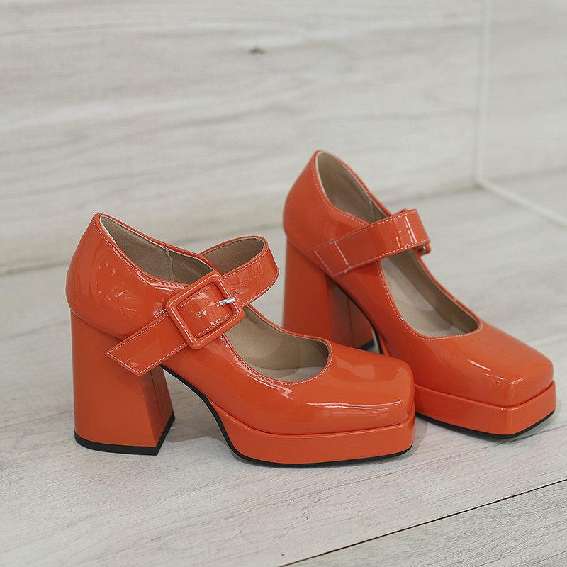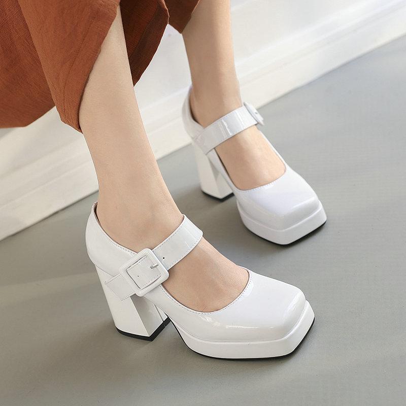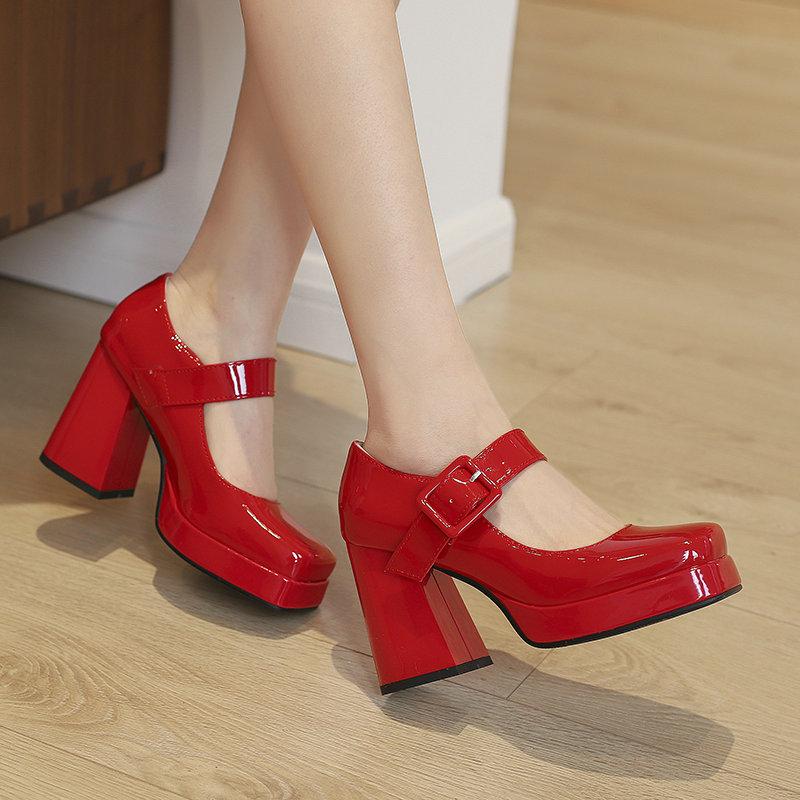 Размер 33–48. Женские офисные туфли из лакированной блестящей искусственной кожи. Туфли Мэри Джейн на платформе с широкой пряжкой и ремешком. Весенне-осенние туфли-лодочки на массивном каблуке для офисной вечеринки.
