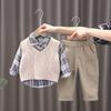 Детский костюм, детский милый вязаный свитер, жилет, клетчатая рубашка для мальчиков, жилет с длинными рукавами, состоящий из трех предметов