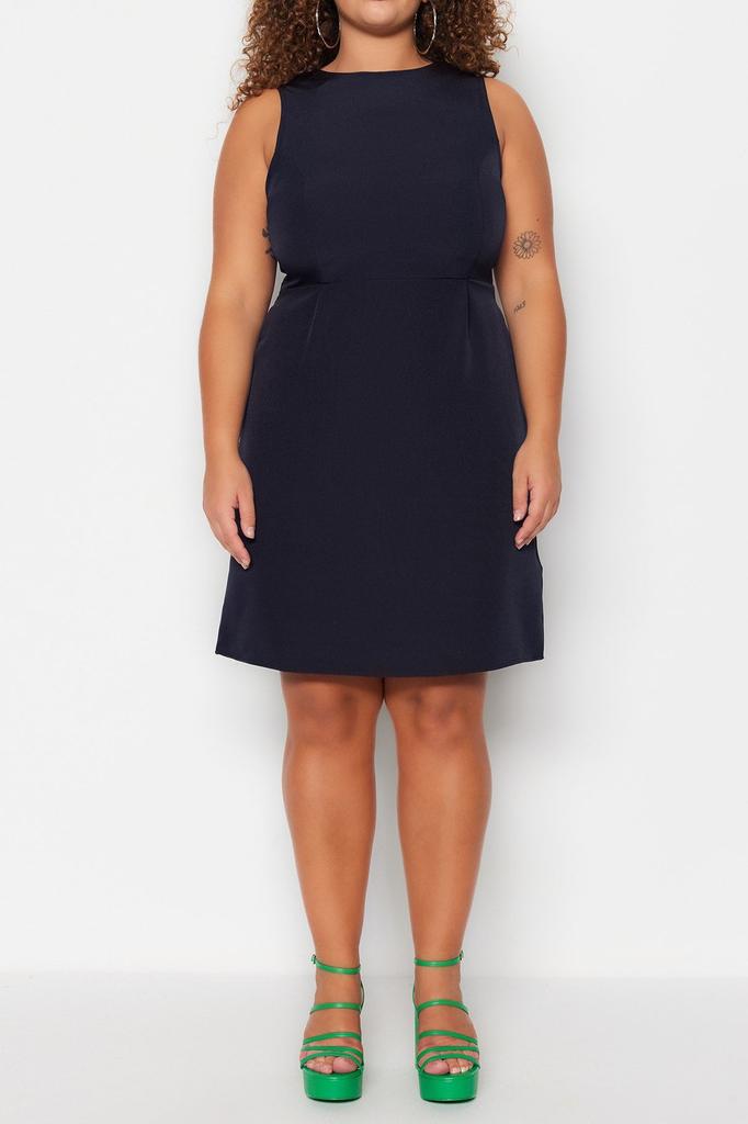 Women's Style Plus Size Dress Navy Blue A-line Woven Dress