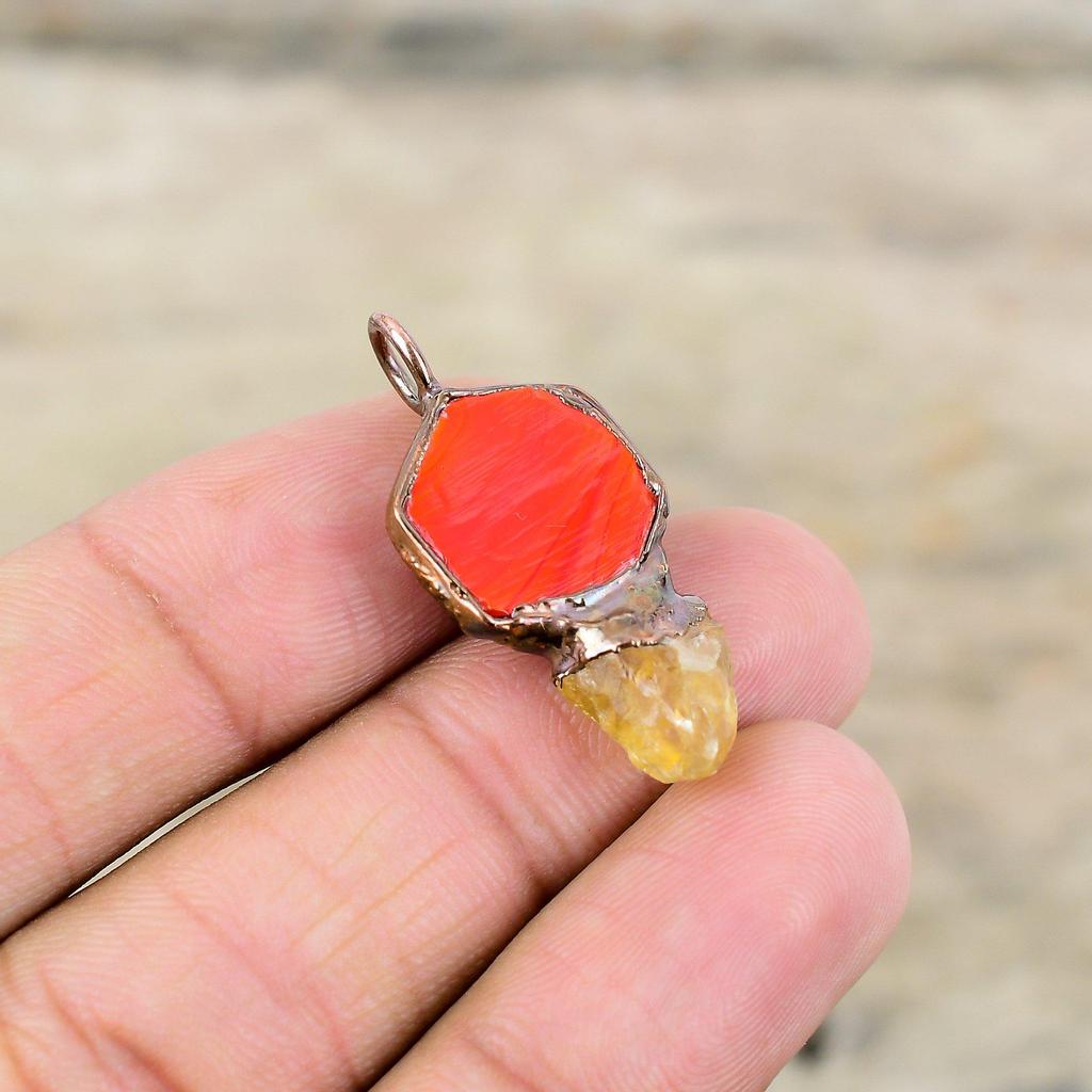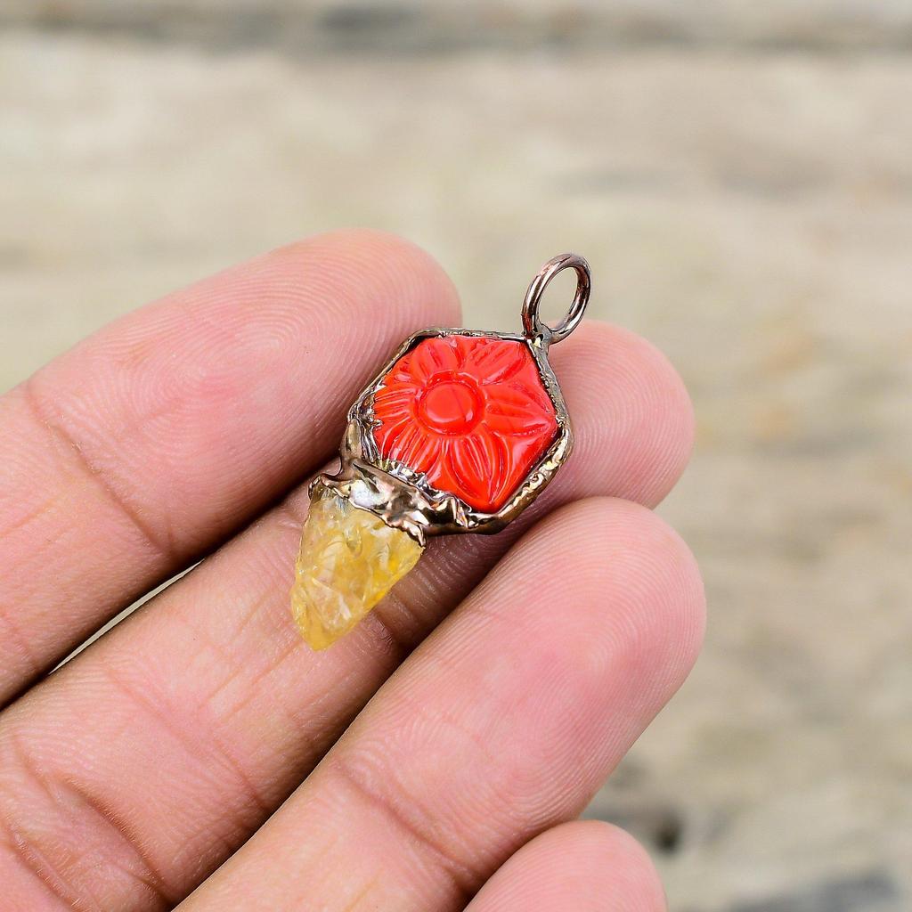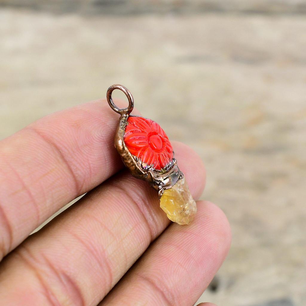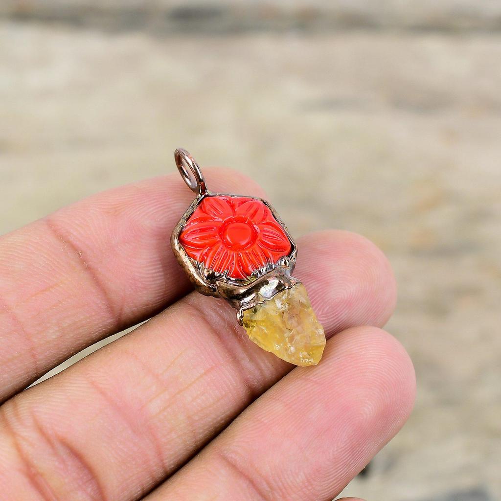 Резной красный оникс с цитрином, грубая подвеска, медный кулон, изготовленный гальваническим способом, ювелирные изделия ручной работы, кулон с драгоценным камнем, ювелирные изделия, изготовленные гальваническим способом, подарок для нее