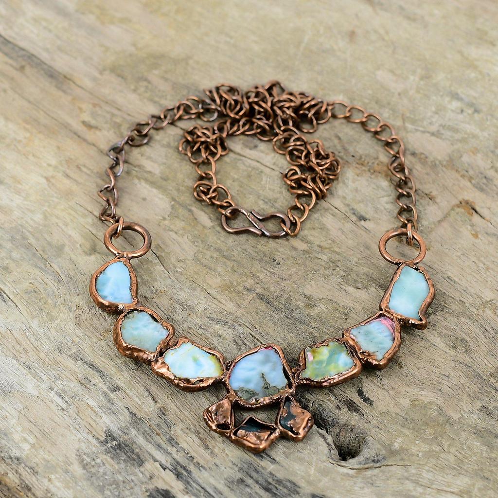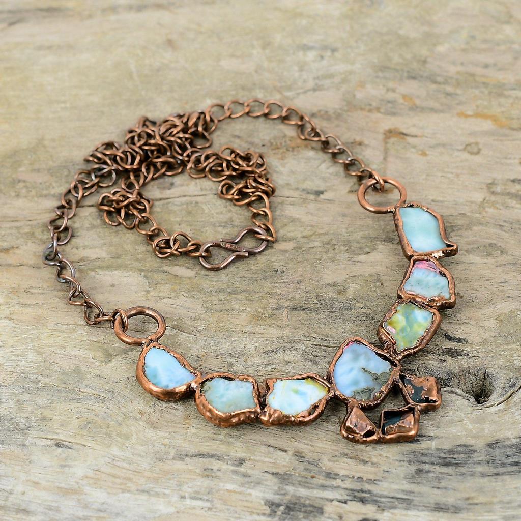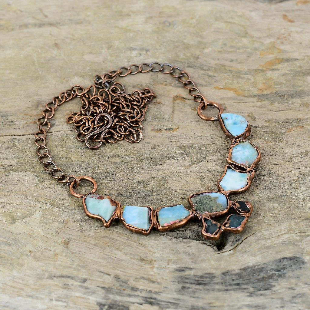 Грубое ожерелье Ларимар, гальваническое медное ожерелье, регулируемая цепочка, ожерелье, ювелирные изделия ручной работы, гальванопластика, ожерелье высокого качества с драгоценными камнями