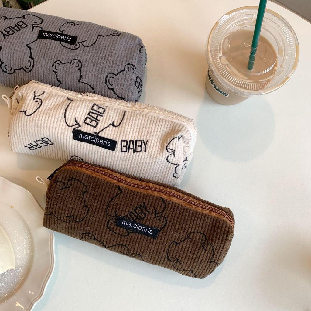 Корейский модный пенал с милым мультяшным медведем, пенал, простота, однотонная серия, сумка для хранения канцелярских принадлежностей, студенческие принадлежности