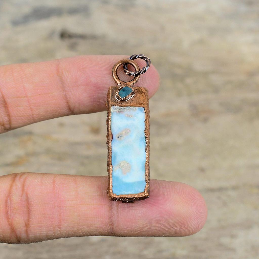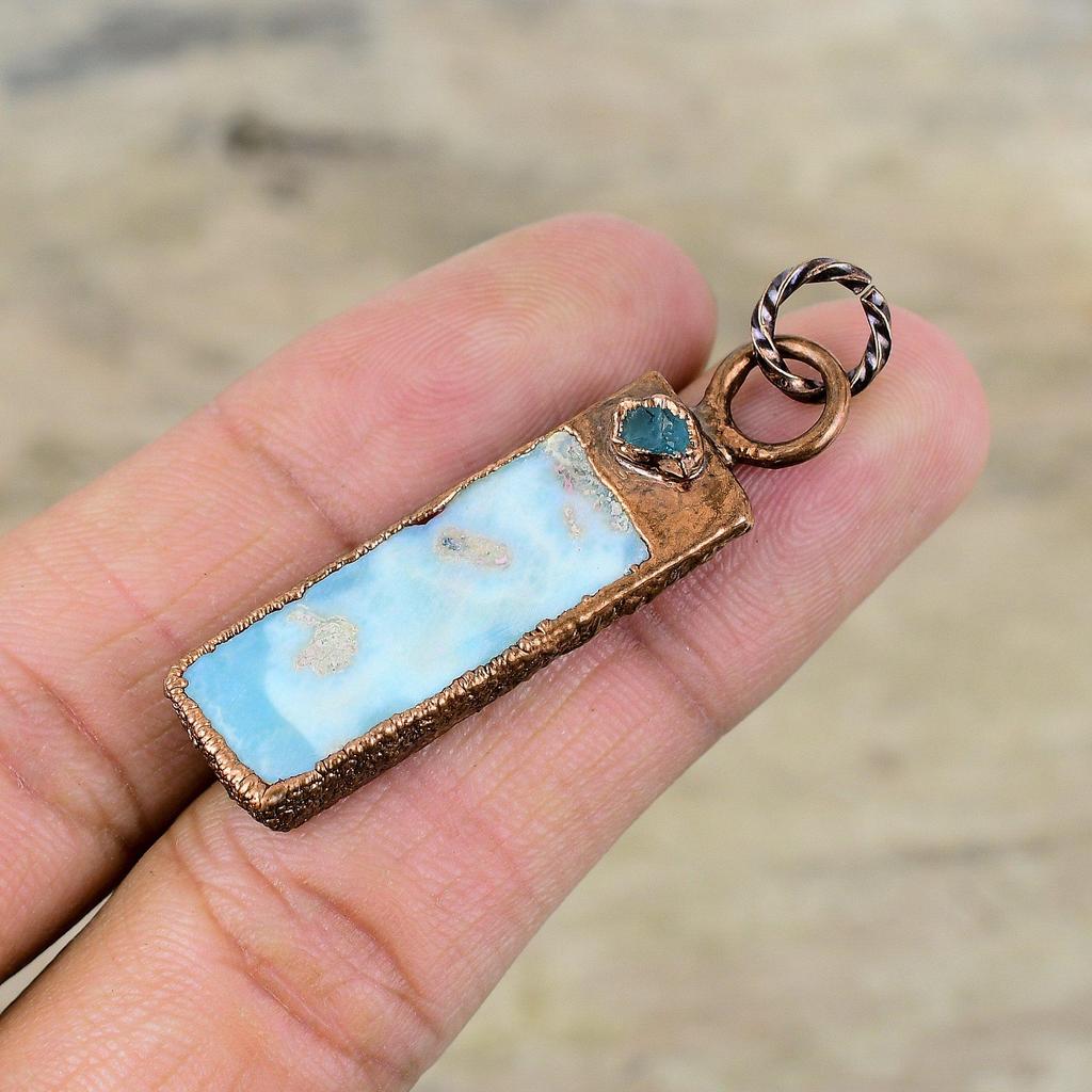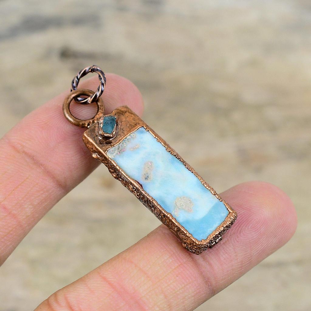 Подвеска из ларимара, синий халцедон, грубая подвеска, гальваническая медная подвеска, ювелирные изделия ручной работы, гальваническая ювелирная подвеска, подвеска из драгоценного камня для подарка