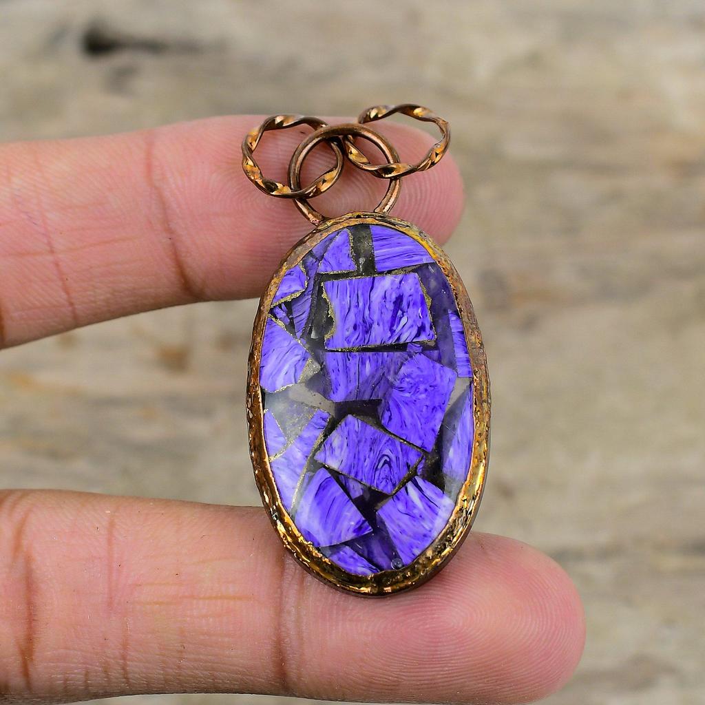 Медный кулон с чароитом, медный кулон, изготовленный гальваническим методом, стильный кулон, кулон с драгоценным камнем, ювелирные изделия, изготовленные гальваническим способом, подарок для мамы, кулон ручной работы — купить товар онлайн с бесплатной доставкой по всему миру!