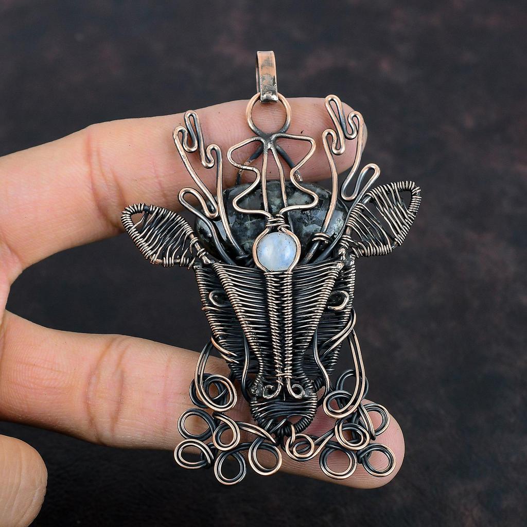 Подвеска Larvikite, медная проволока, обернутая в морду оленя, подвеска Rainbow Moonstone, подвеска ручной работы, оригинальный драгоценный камень, подарок на помолвку