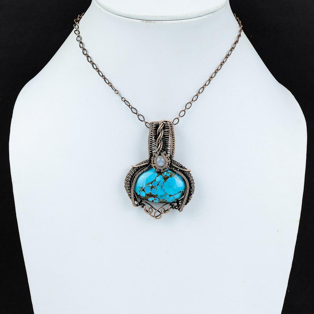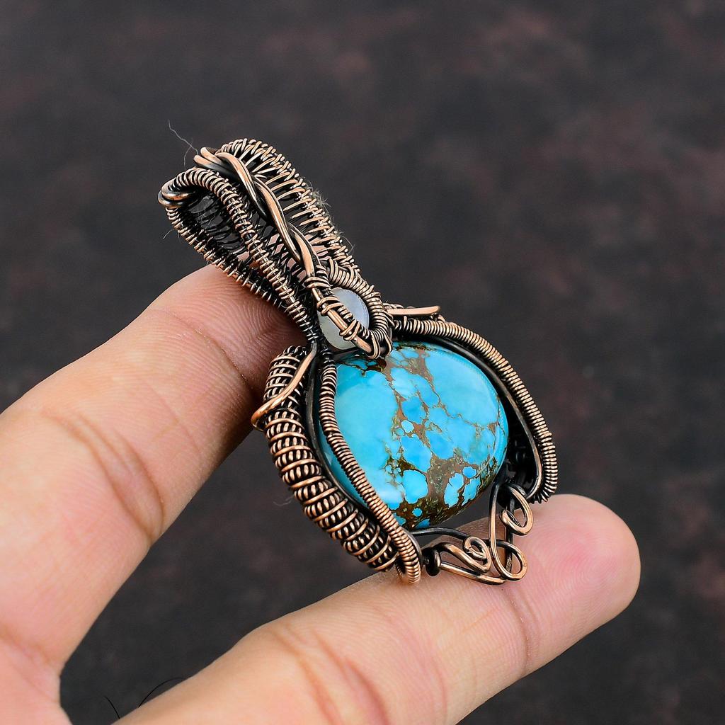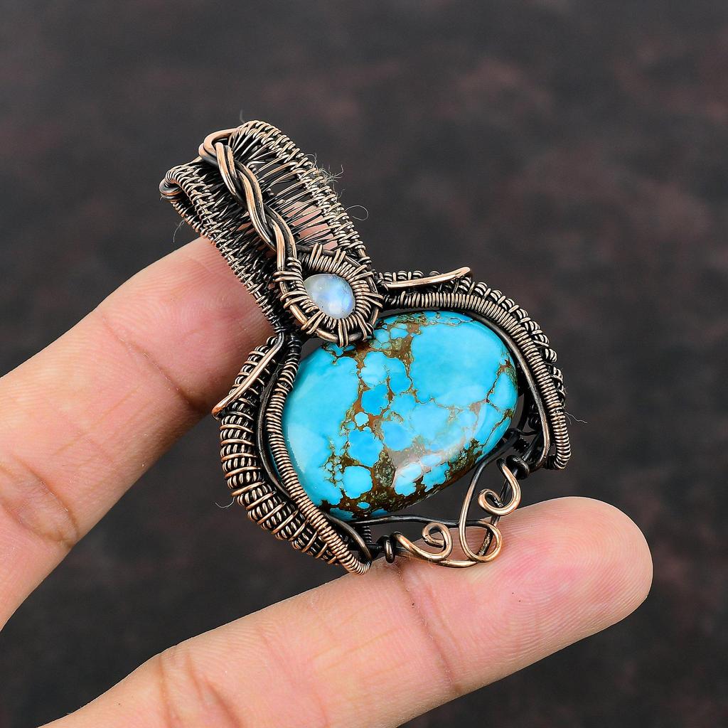 Подвеска из тибетской бирюзы, подвеска из медной проволоки, подвеска из радужного лунного камня, ювелирные изделия ручной работы, подвеска из драгоценного камня, медные ювелирные изделия для подарка