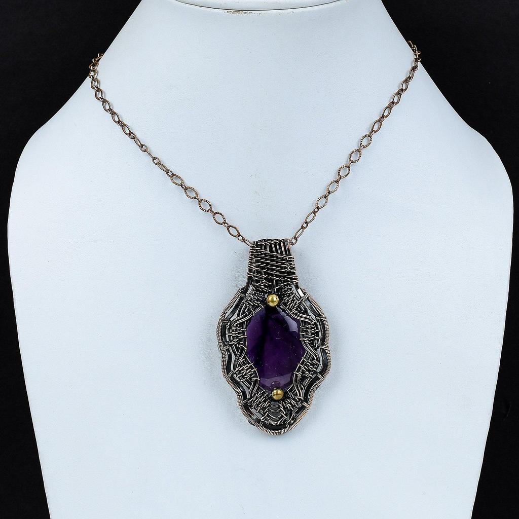 Star Amethyst Pendant Copper Wire Wrapped Pendant Gemstone Pendant Star Amethyst Jewelry Handmade Pendant Copper Wire Jewelry Gift For Mom
