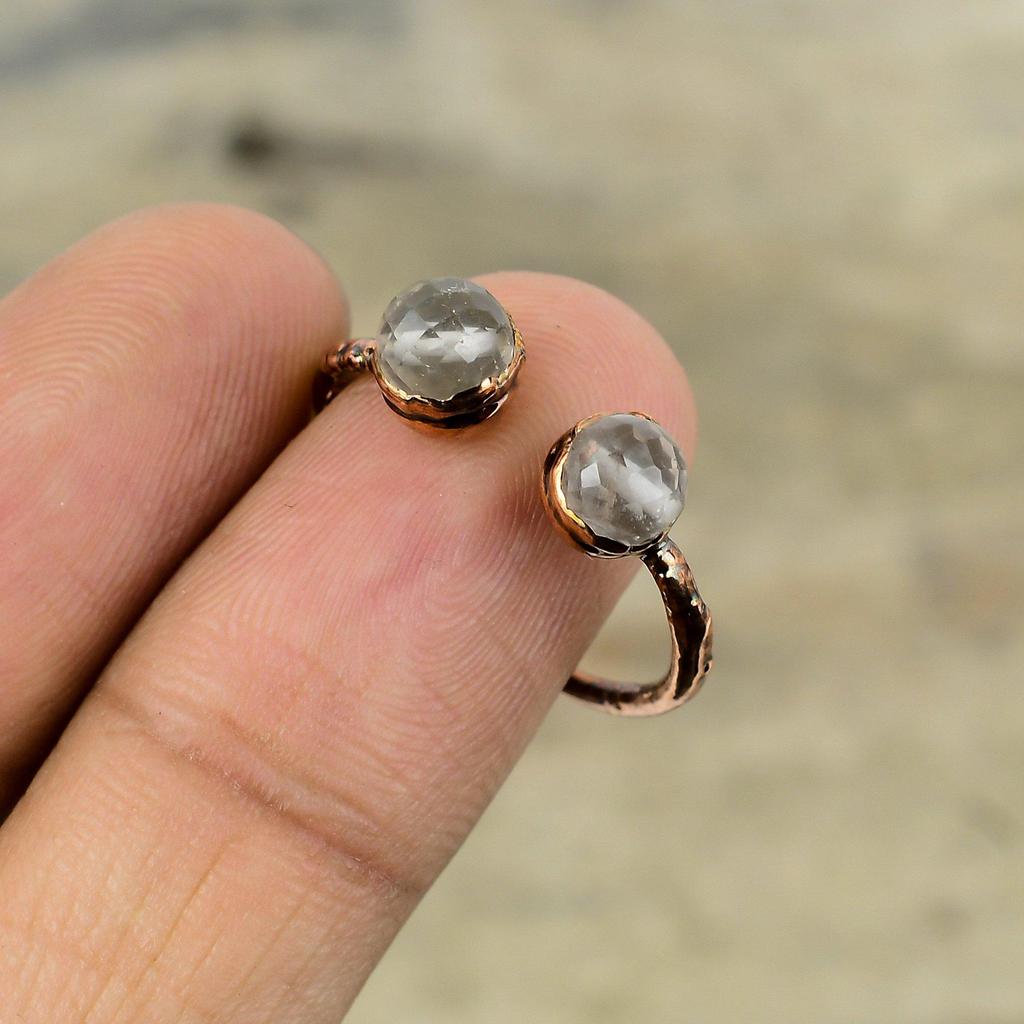 Граненое кольцо из розового кварца Медное кольцо гальванопластики Регулируемое кольцо Кольцо ручной работы Медные украшения Кольцо с драгоценным камнем для подарка Ювелирные изделия гальванопластикой
