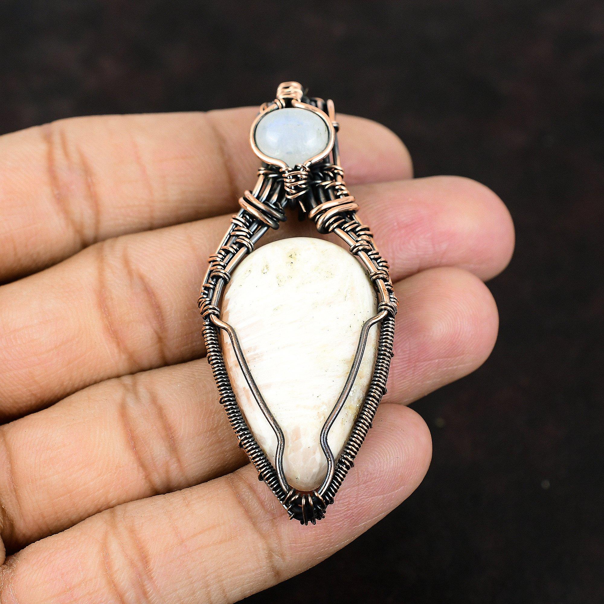 Медный кулон из сколецита, медная проволока, ювелирные изделия, ювелирные изделия из сколецита, радужный лунный камень, кулон из драгоценного камня, кулон ручной работы, подарок для мамы