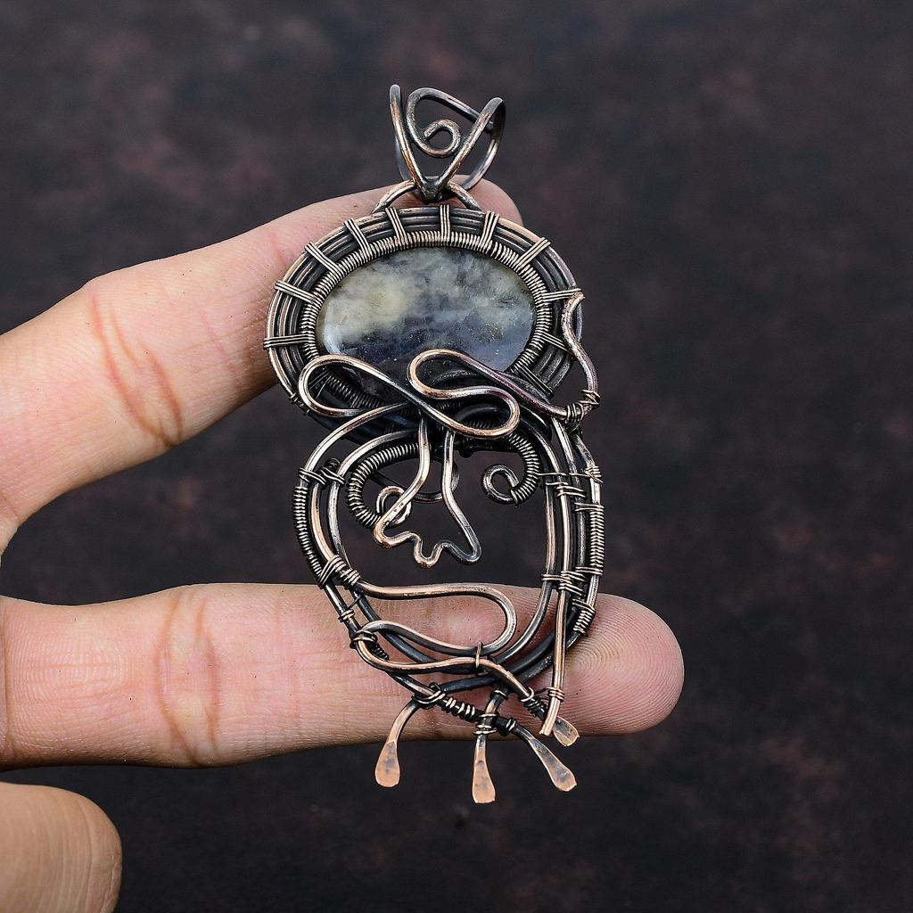 Подвеска из иолита, обернутая медной проволокой, подвеска из драгоценного камня, иолит, медные украшения, изготовленные вручную, изумительная подвеска, обернутая проволокой, специальный женский подарок