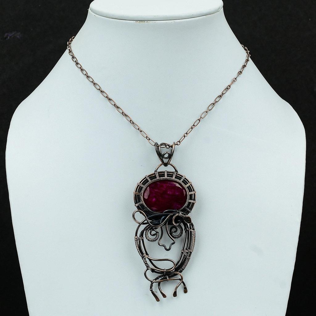 Кулон с ограненным кашмирским рубином, подвеска из медной проволоки, медные украшения, подвеска ручной работы, ювелирные изделия с проволочной оберткой, подвеска из драгоценного камня, подарок на годовщину