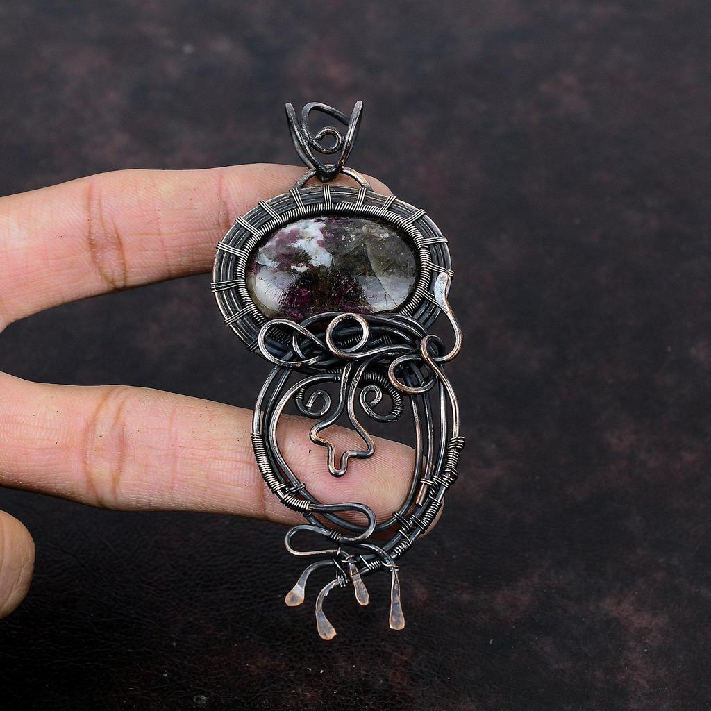 Кулон с розовым турмалином, кулон, обмотанный медной проволокой, украшения с турмалином, кулон с драгоценным камнем, украшения из античной меди, кулон ручной работы, подарок для него — купить товар онлайн с бесплатной доставкой по всему миру!