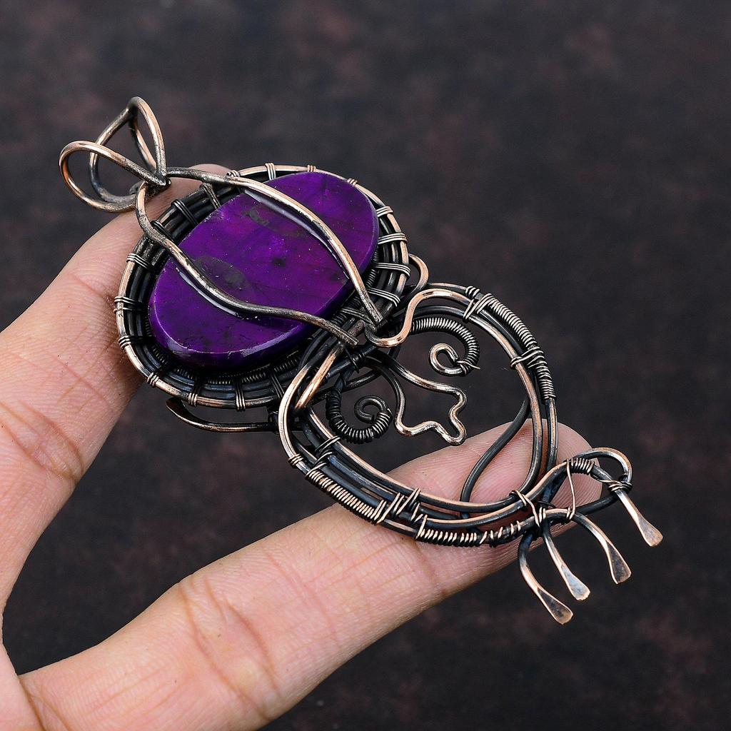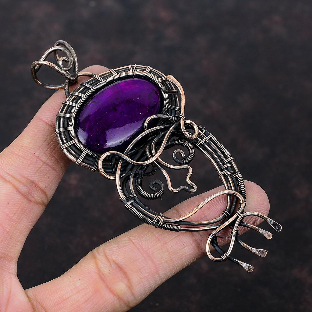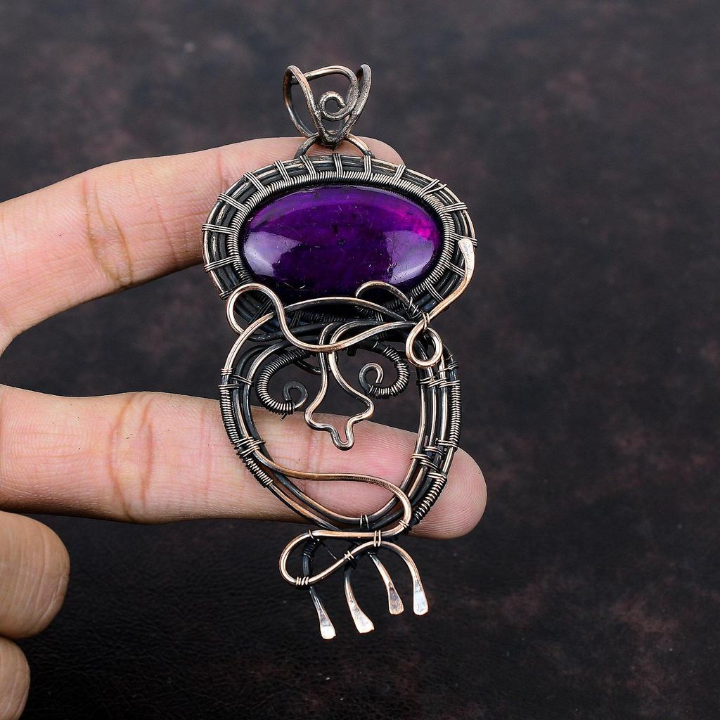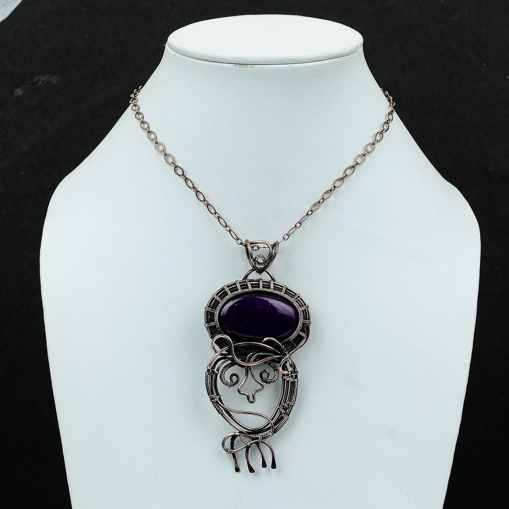 Кулон из фиолетового огненного лабрадорита, кулон, обернутый медной проволокой, кулон ручной работы, медные украшения, подарок для нее, кулон с драгоценным камнем, украшения в технике wire wrap