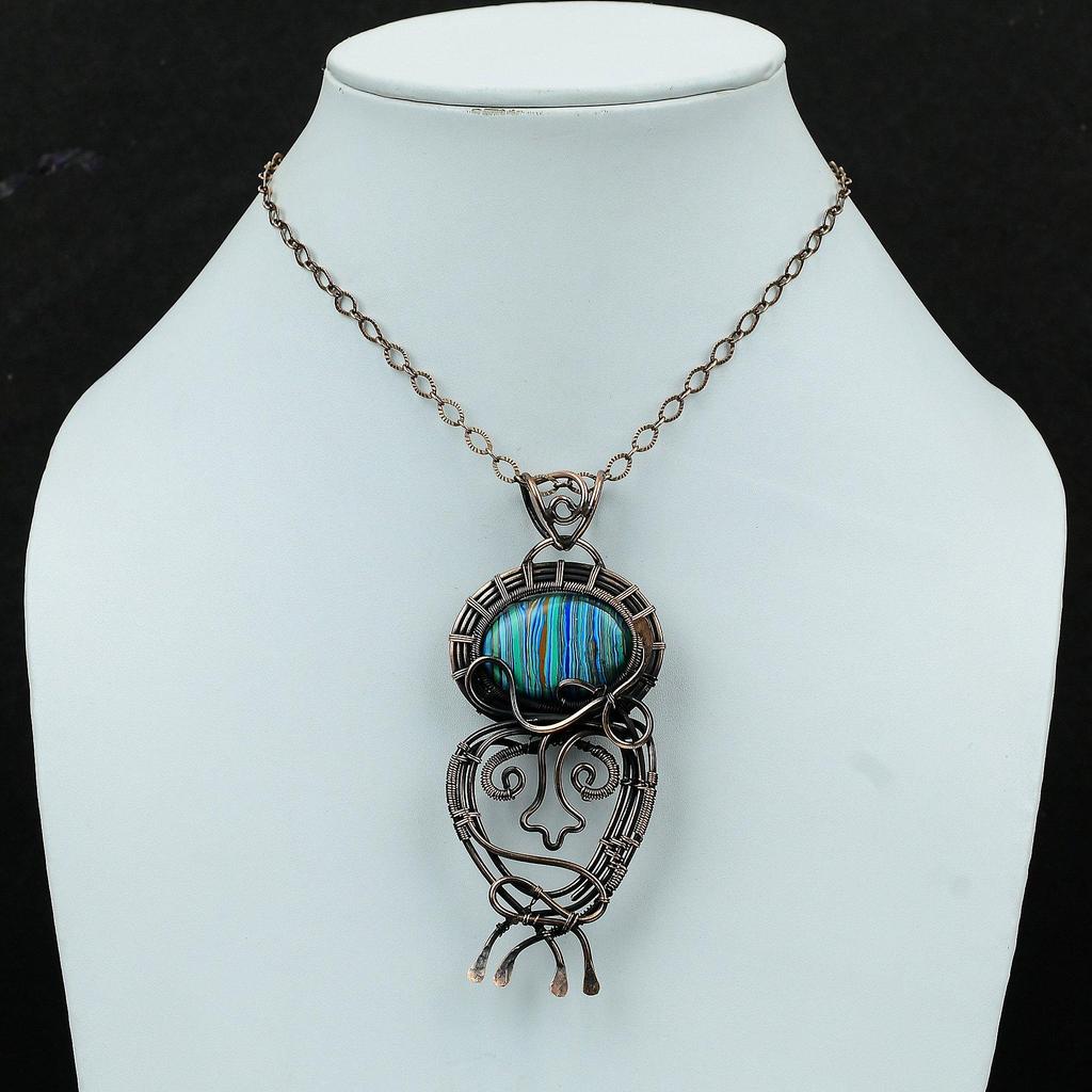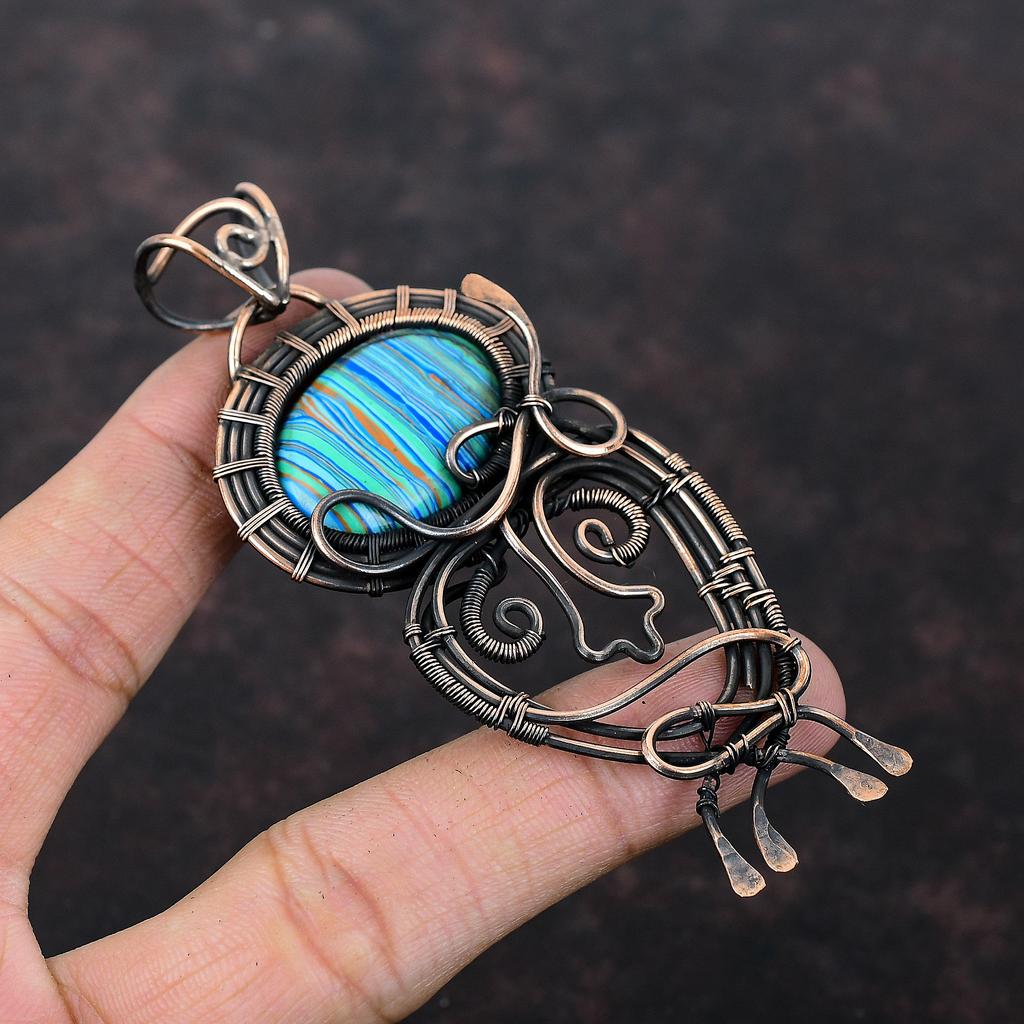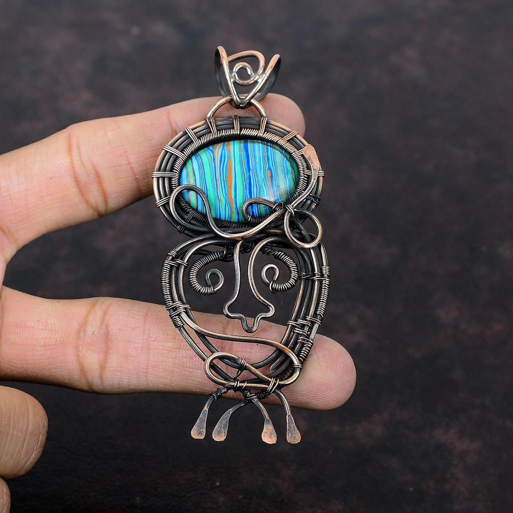 Подвеска Rainbow Calsilica, обернутая медной проволокой, подвеска из драгоценного камня, настоящая радужная кальциевая бижутерия, ручная работа, обернутая медной проволокой, подарок для него