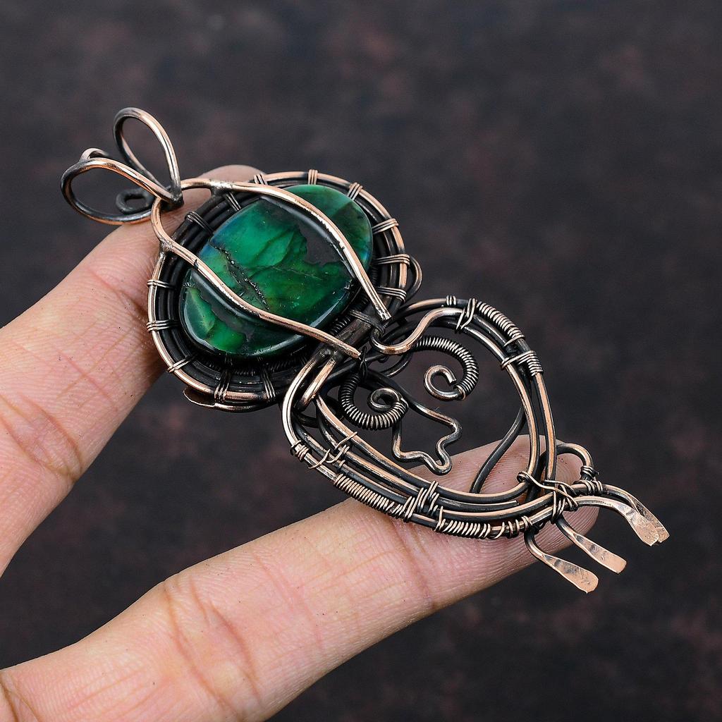 Зеленый огненный лабрадорит кулон медная проволока обернутый кулон ручной работы медное ювелирное украшение драгоценный камень лабрадорит ювелирное украшение подарок для него