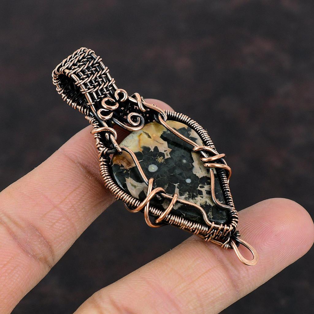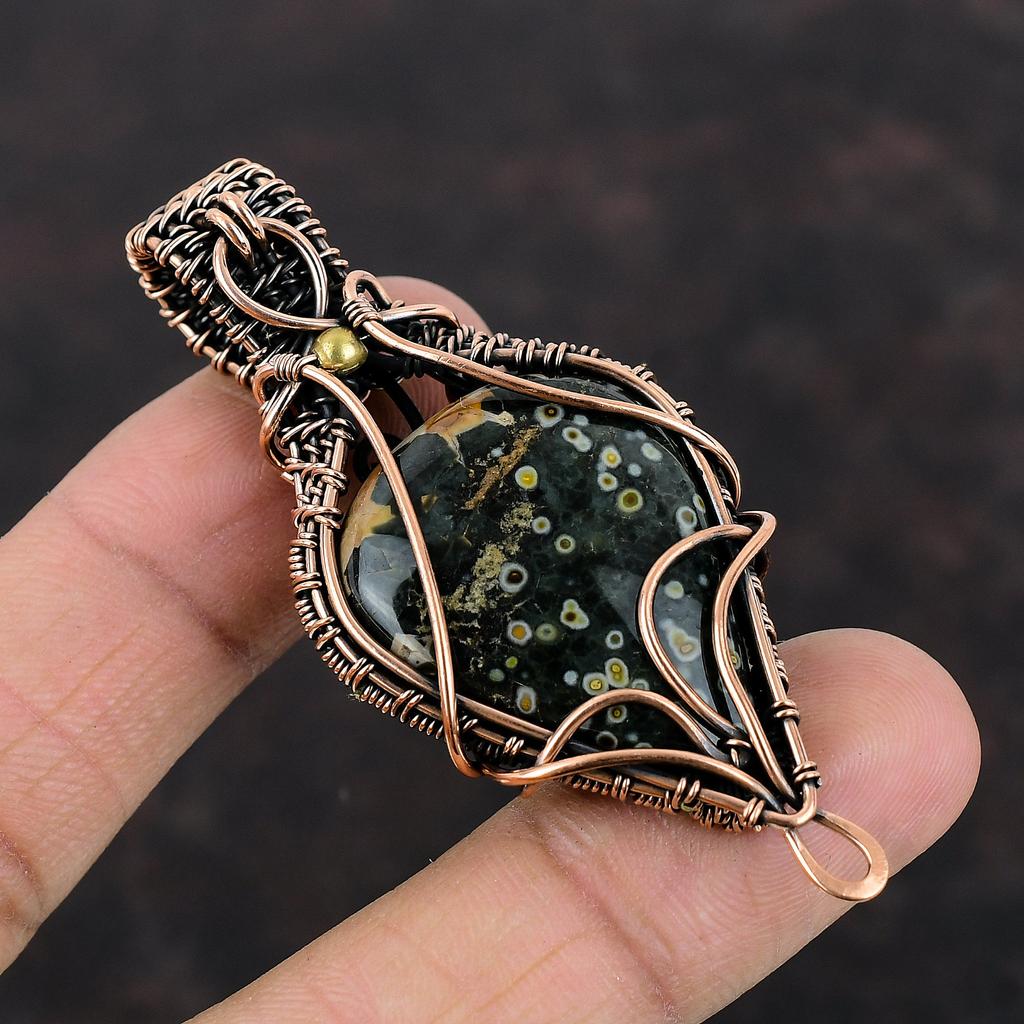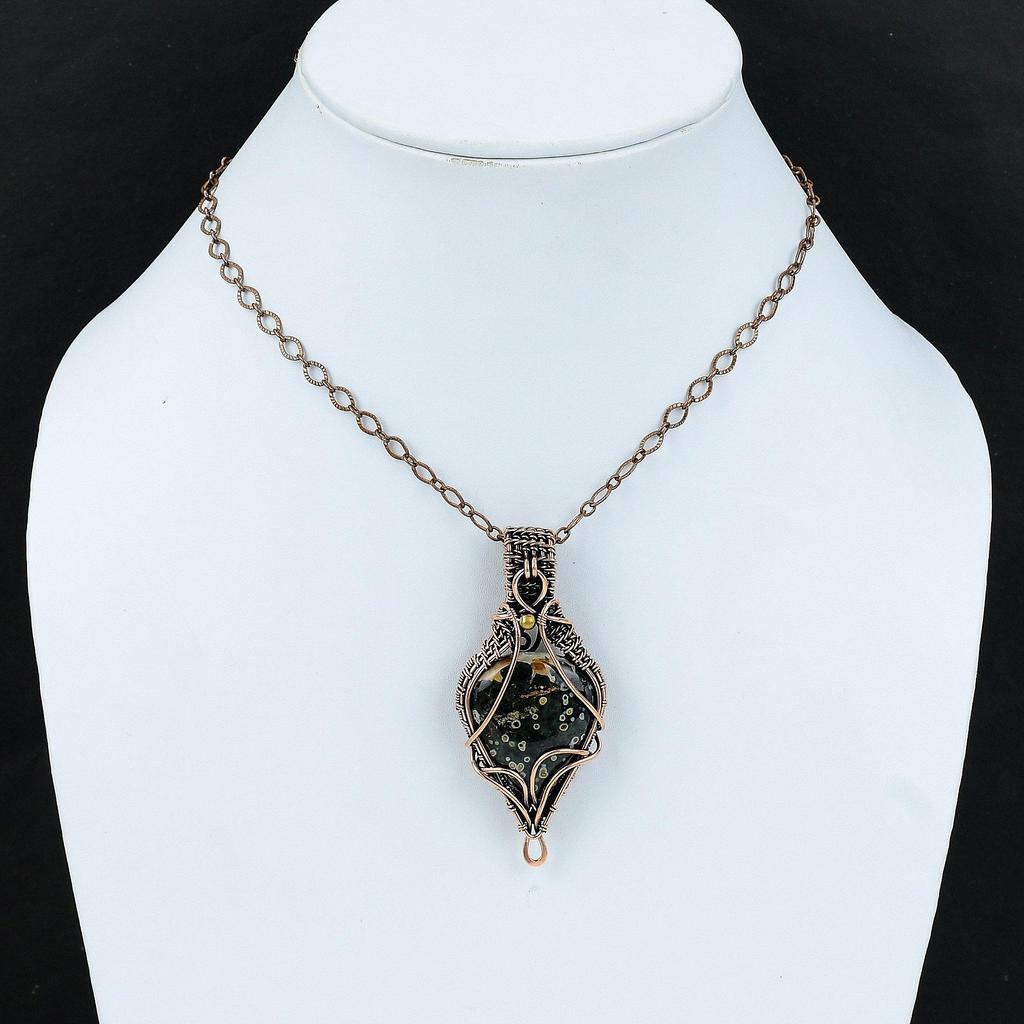 Подвеска из океанической яшмы, обернутая медной проволокой, Подвеска из драгоценного камня, Медные украшения, Ручная работа, Антикварная подвеска, Украшения, обернутые проволокой, Подарок для мамы