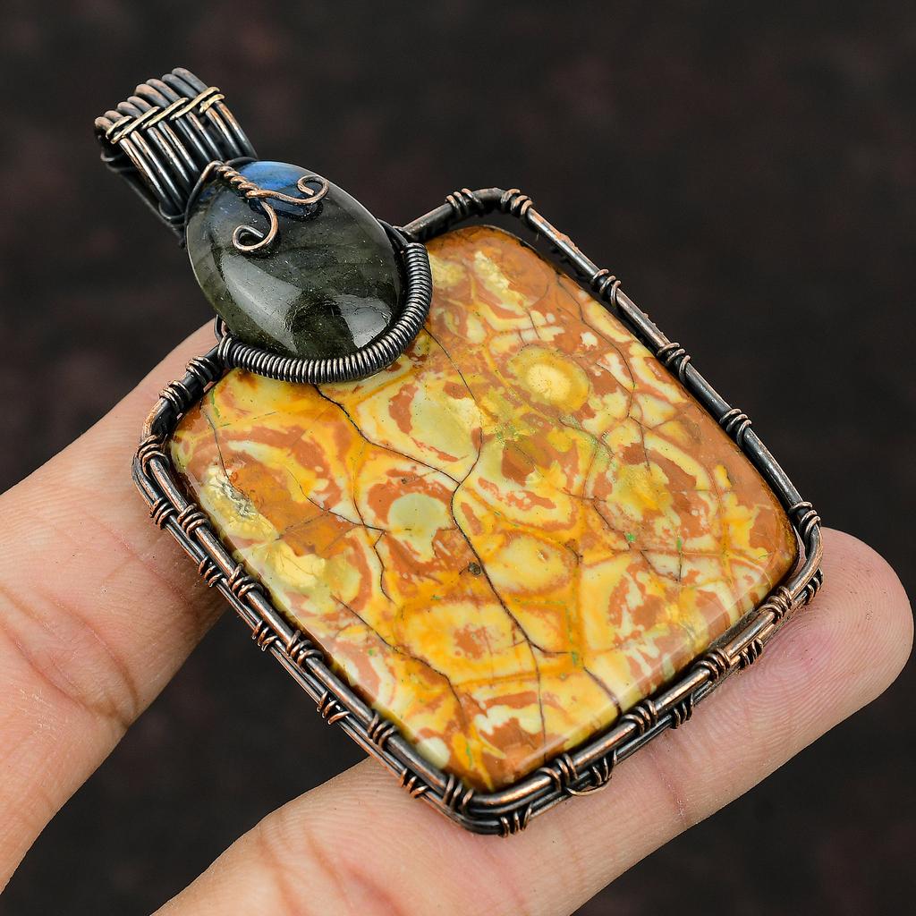 Подвеска Birds Eye Jasper, подвеска из медной проволоки, сказочный кулон из драгоценных камней, подвеска из лабрадорита, медные украшения ручной работы, подарок на годовщину