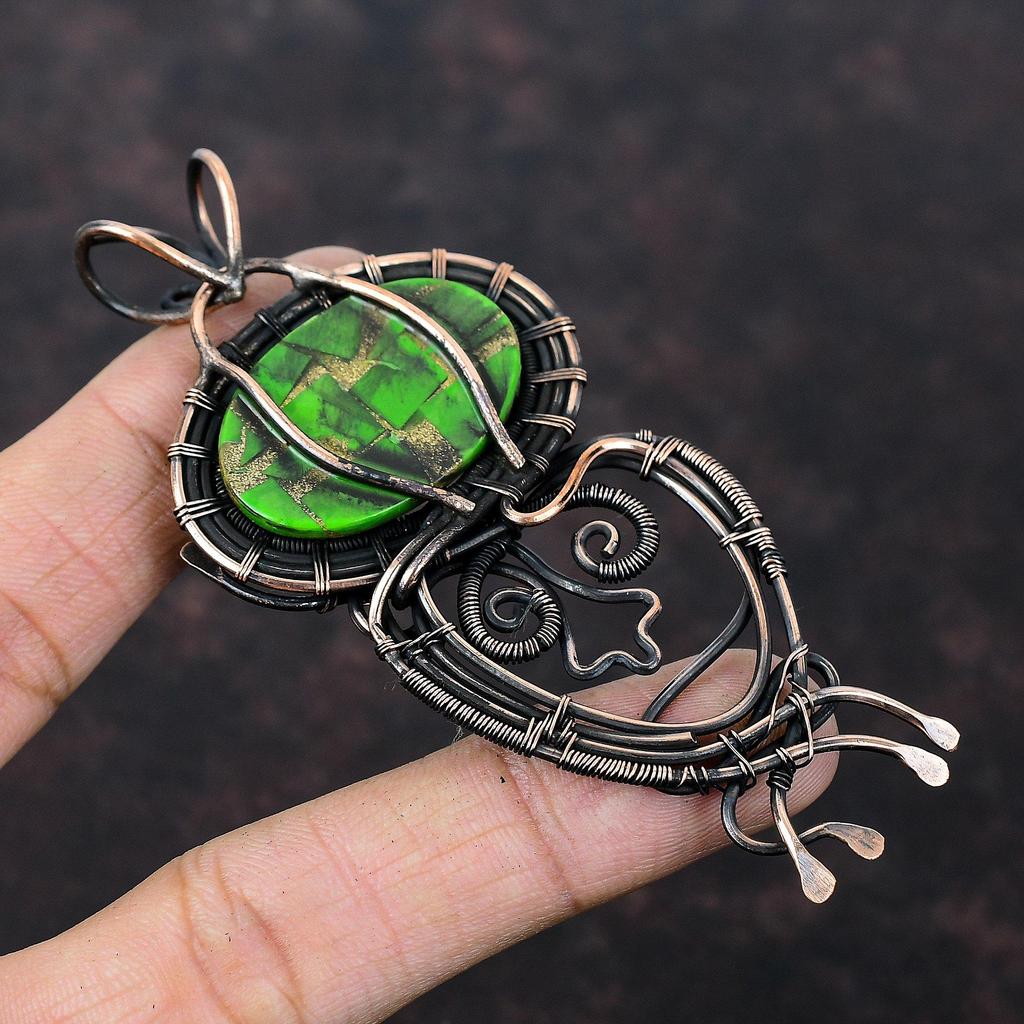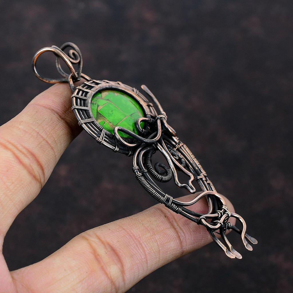 Медный Зеленый Бирюзовый Подвеска Подвеска, обернутая медной проволокой Ручная работа Бохо Подвеска Драгоценный камень Медные украшения Подарок на годовщину Украшения из проволоки