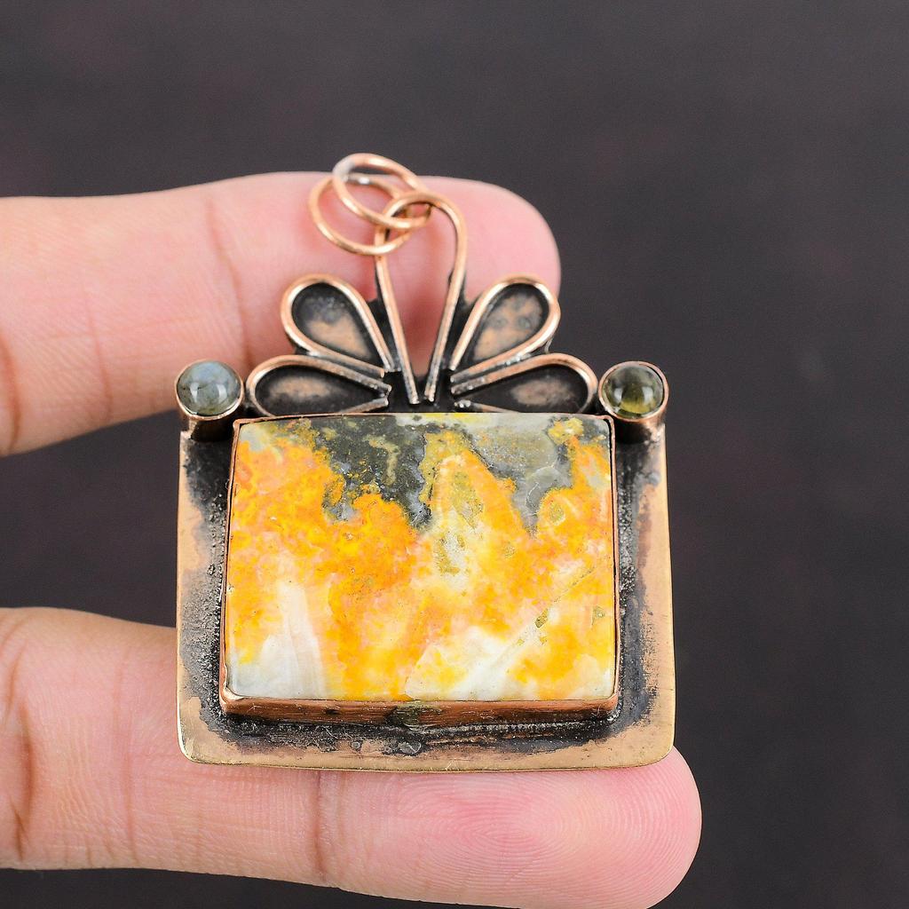 Подвеска из яшмы "Шмель" Подвеска из лабрадорита Драгоценный камень Медная подвеска Подвеска ручной работы Уникальный медный дизайн Ювелирные изделия Специальный кулон для подарка
