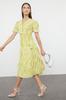 Женское стильное платье, масляно-зеленое платье с принтом, двубортная юбка с поясом, вязаное платье с рюшами