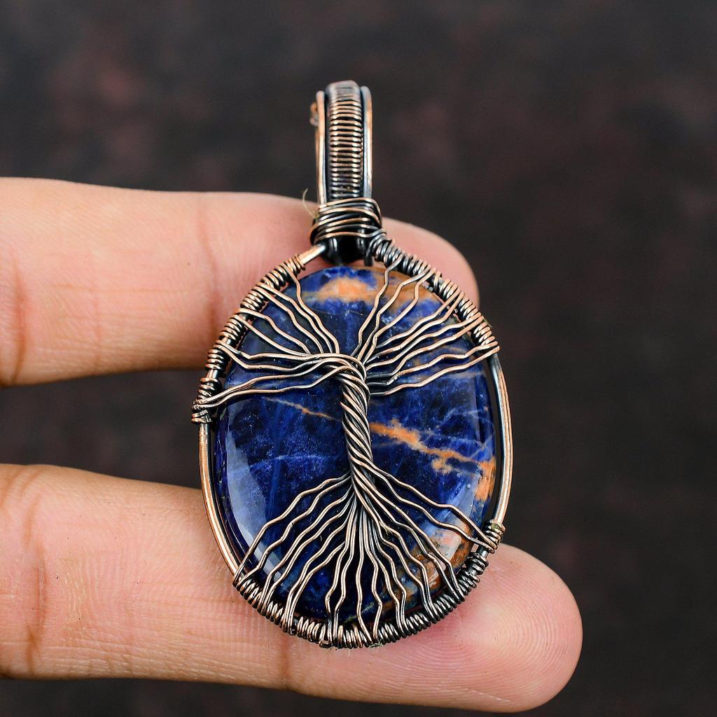 Древо жизни Подвеска из драгоценного камня содалита Медная проволока Обернутая подвеска Проволочная обмотка Ювелирный подарок для мамы Подвески ручной работы Ювелирные изделия Древо жизни