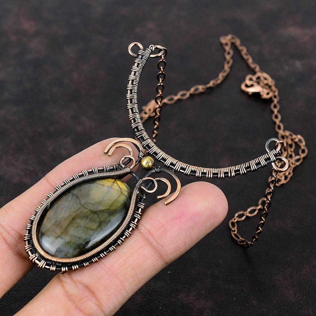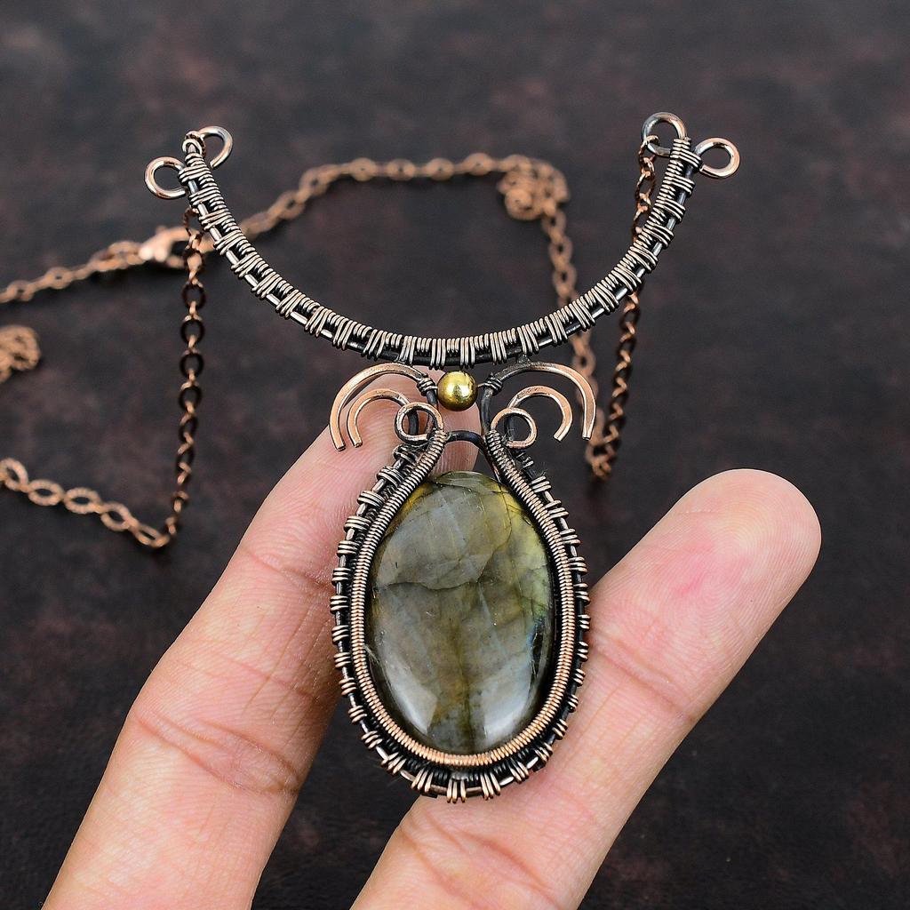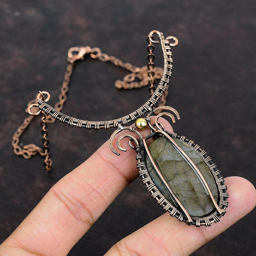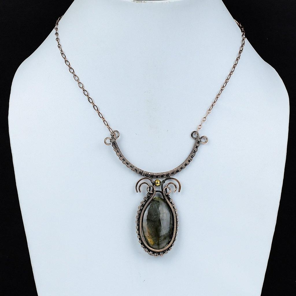 Ожерелье из драгоценного камня лабрадорита, ожерелье из медной проволоки, регулируемое ожерелье, ювелирные изделия из меди, ожерелье ручной работы, дизайнерские украшения для подарка
