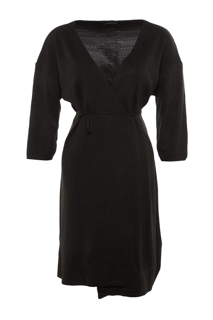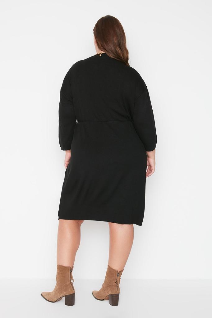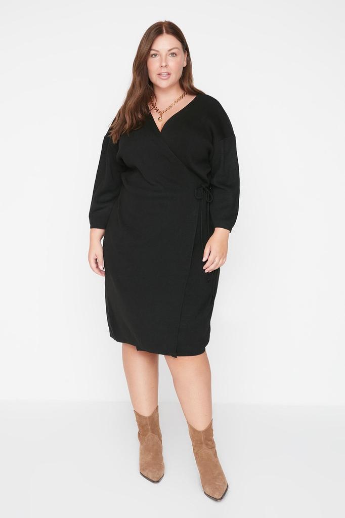 Женское платье больших размеров, черное двубортное трикотажное платье с завязками