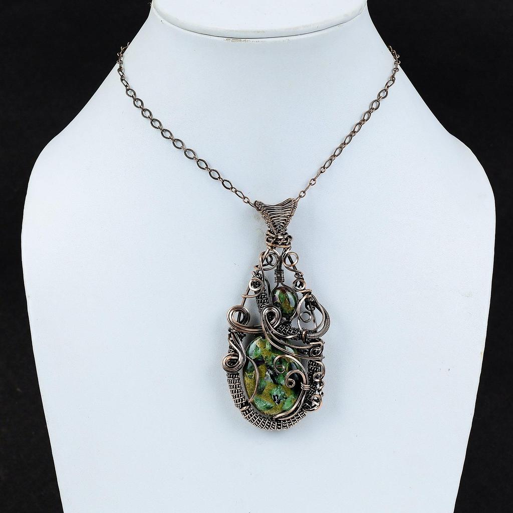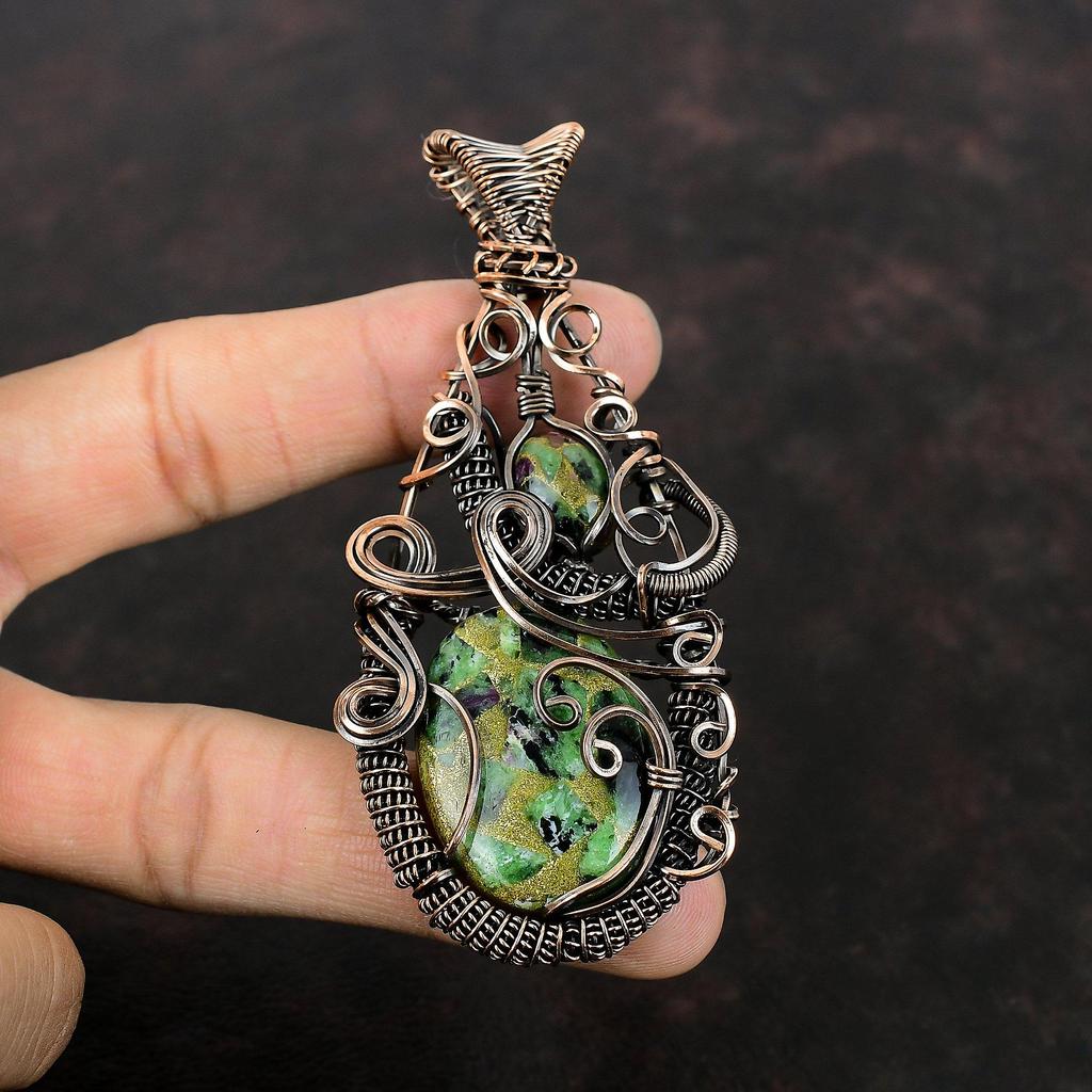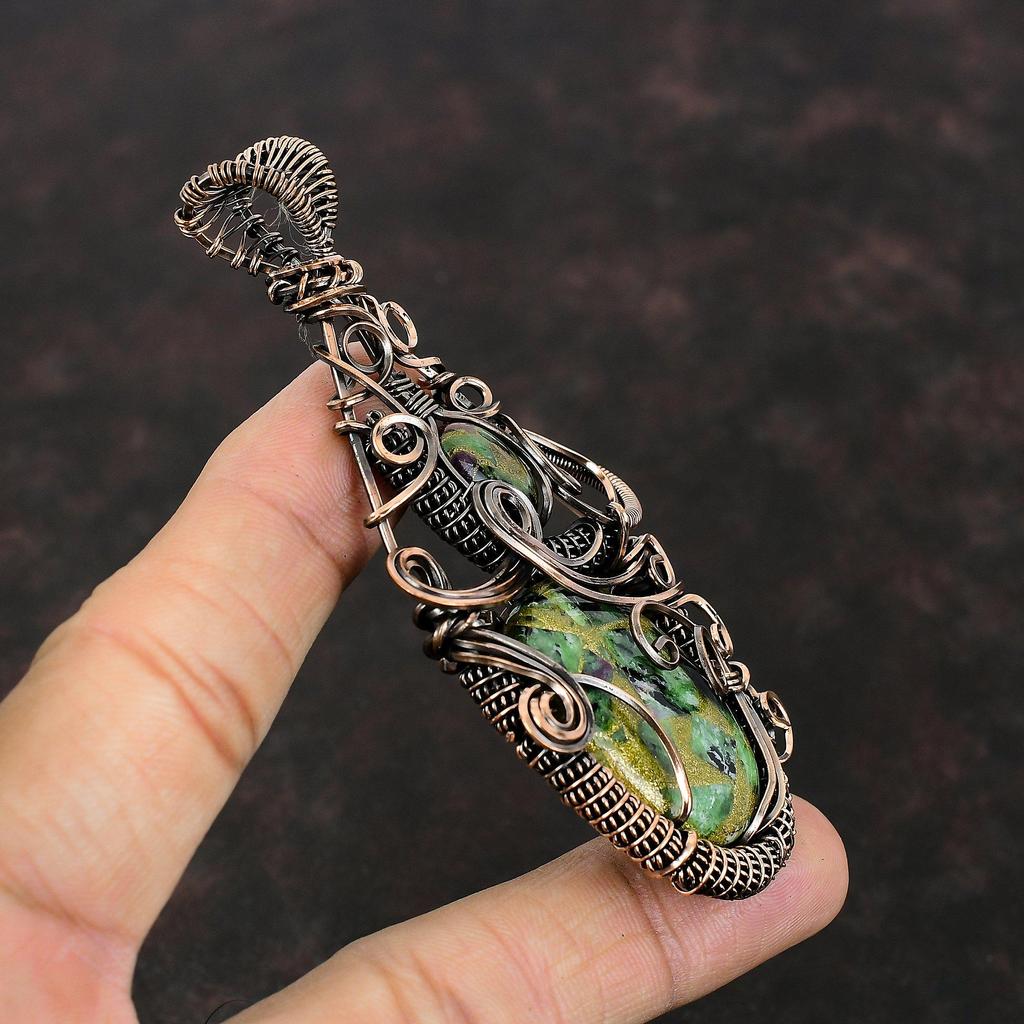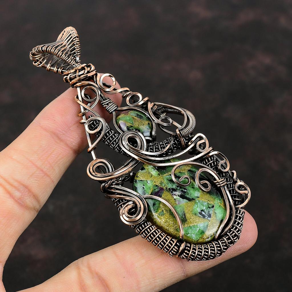 Подвеска из медного рубина и цоизита, подвеска из медной проволоки, подвеска ручной работы, медные украшения, уникальный кулон, настоящие драгоценные камни, подарок для мамы