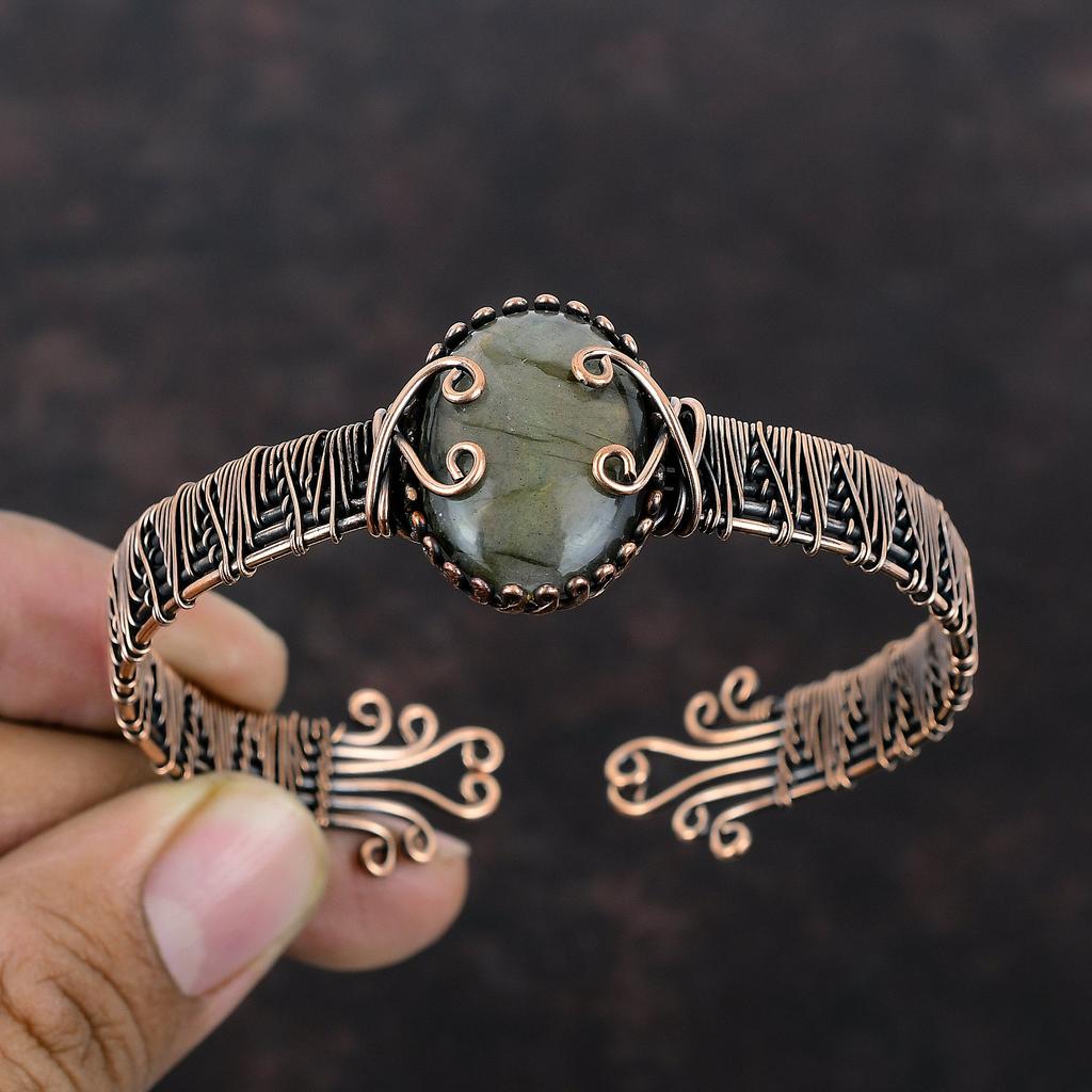 Лабрадорит Медный Браслет-манжета Проволочная обмотка Регулируемый Браслет-манжета Драгоценный Камень Браслет Ручной Работы Медная Проволока Ювелирные Изделия Подарок На Годовщину