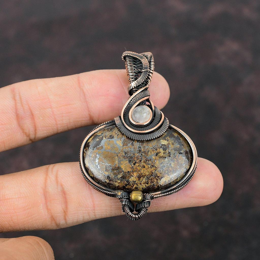 Подвеска из бронзита, обернутая медной проволокой, ручная работа, медные украшения, радужный лунный камень, подвеска для женщин, драгоценный камень, подарок для матери