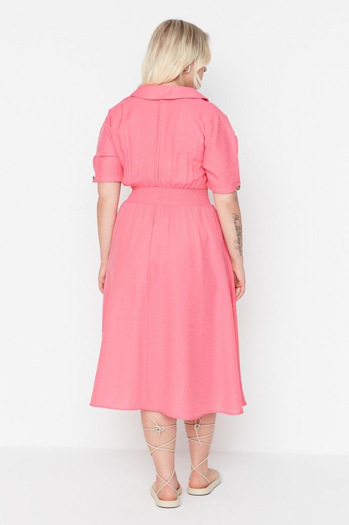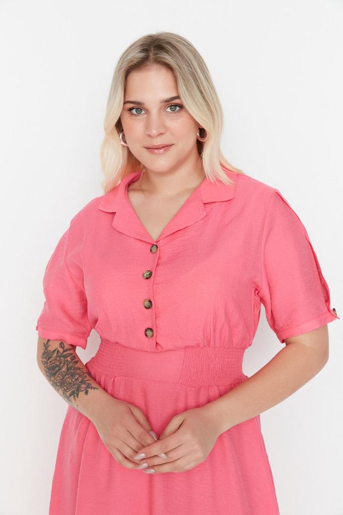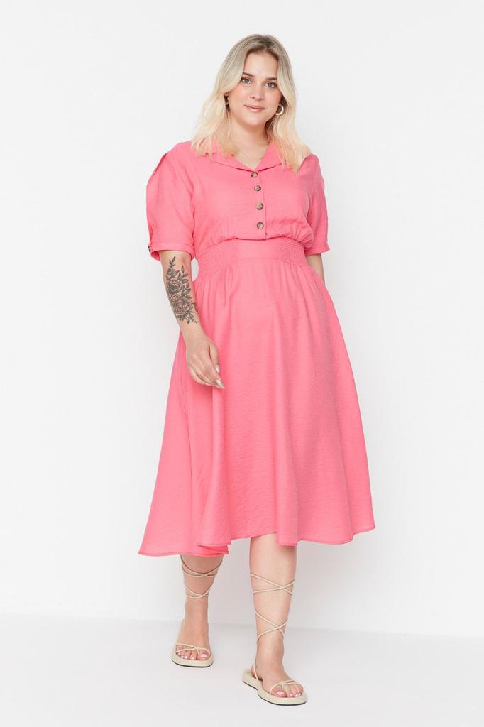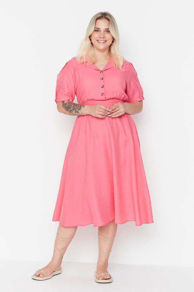 Женское платье больших размеров, розовое тканое платье из жиппе и пуговиц