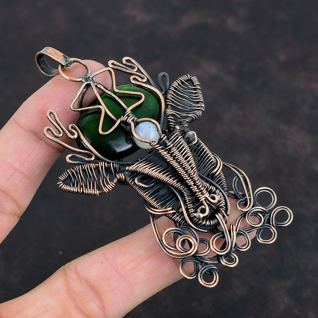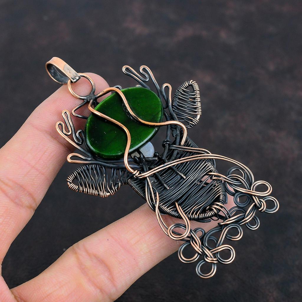 Кулон из камня Лабрадорит Зеленый Огонь, обернутый медной проволокой, ручной работы, Ювелирное изделие из Радужного Лунного камня, Кулон с лицом оленя, Ювелирное изделие из медной проволоки