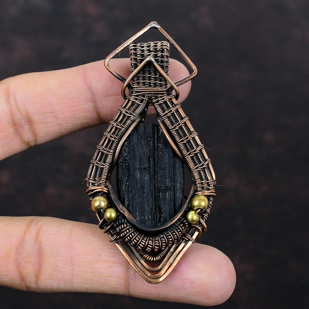 Черный турмалин грубый кулон медная проволока обернутый кулон драгоценный камень кулон ручной работы медная проволока ювелирные изделия свадебный подарок уникальный кулон