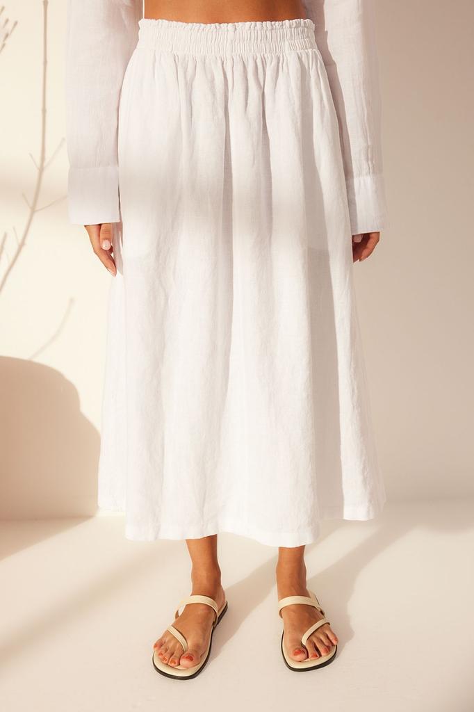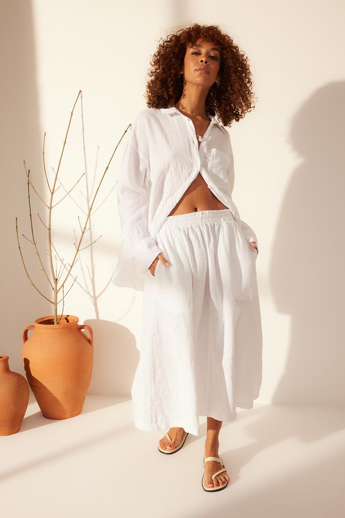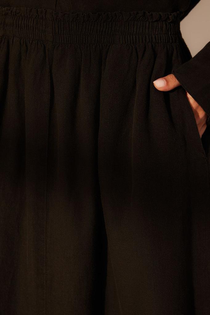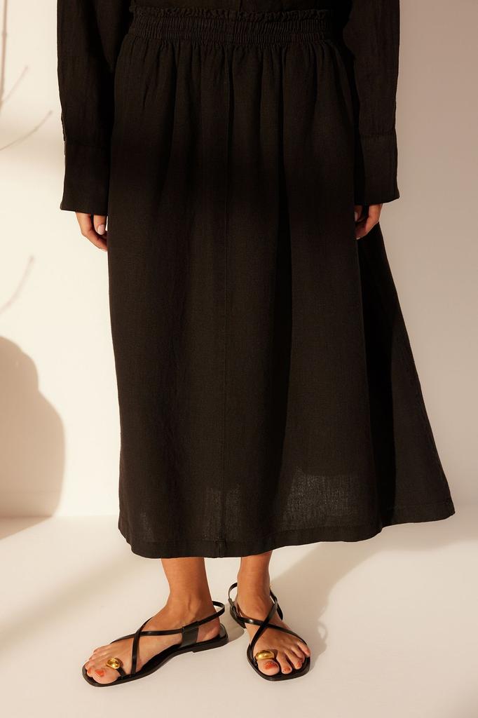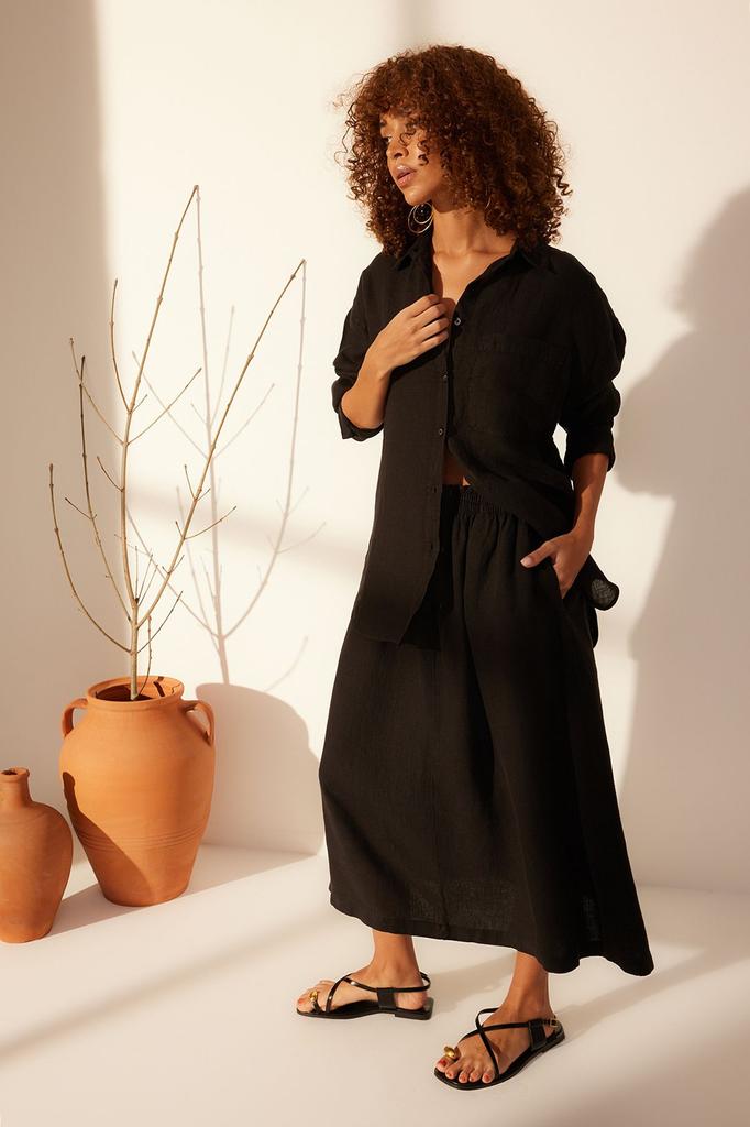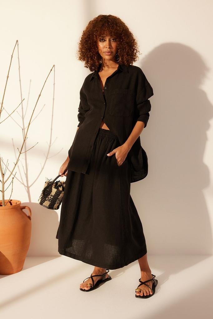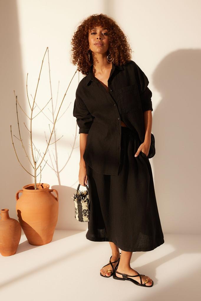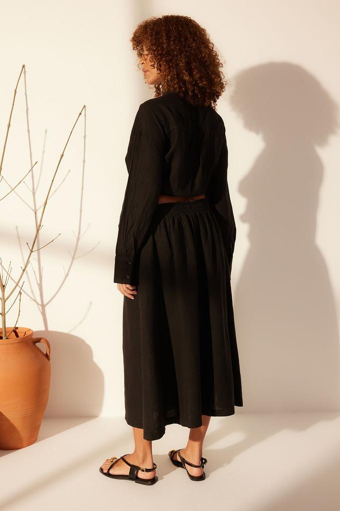 Женская стильная юбка Черная юбка-миди из 100% льна с эластичной резинкой на талии