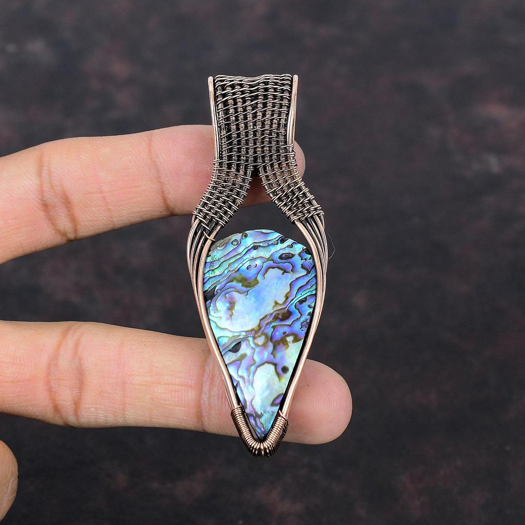 Подвеска из ракушки абалон, подвеска из медной проволоки, драгоценный камень, кулон ручной работы, медные украшения, подарок для нее, украшения из проволоки, лечебный камень
