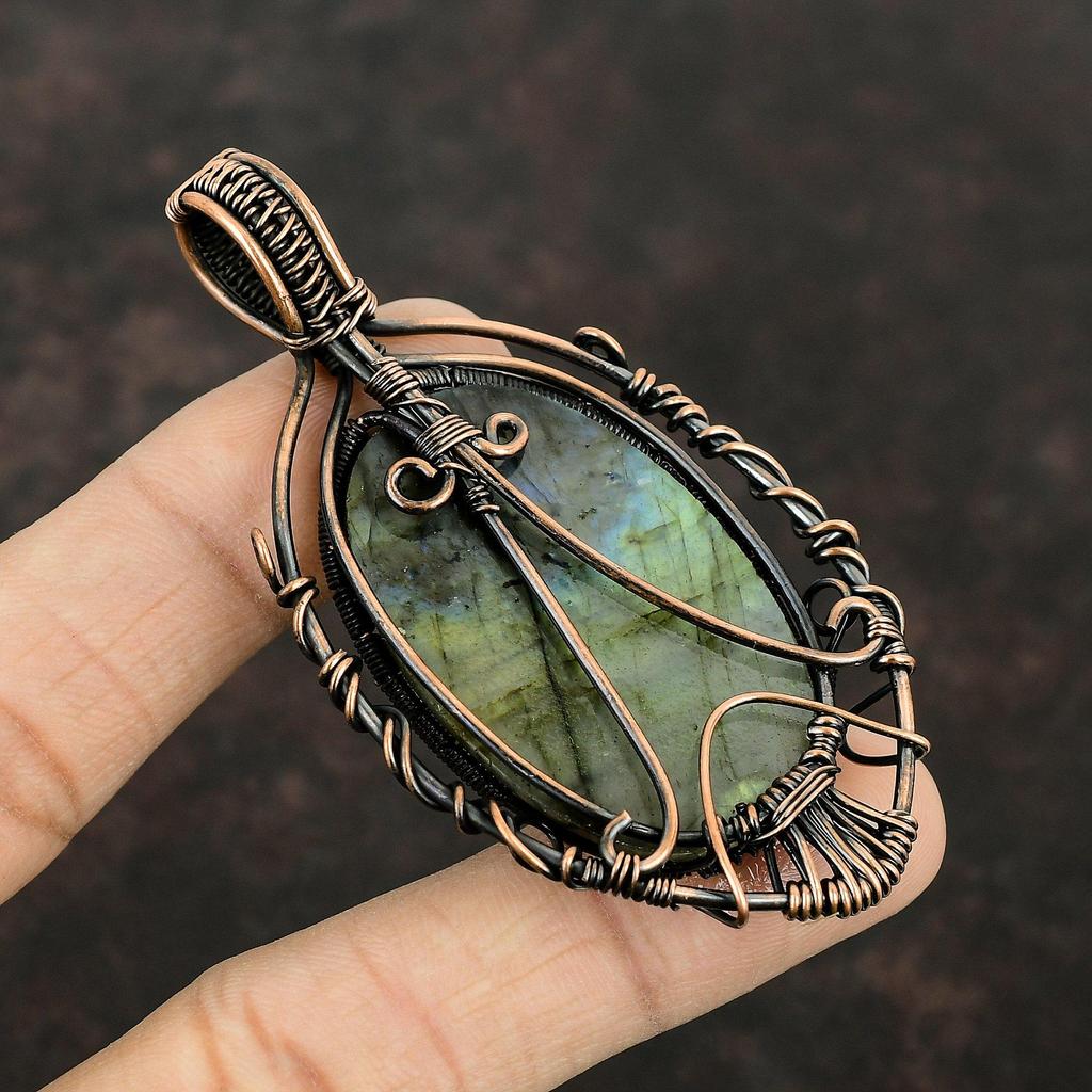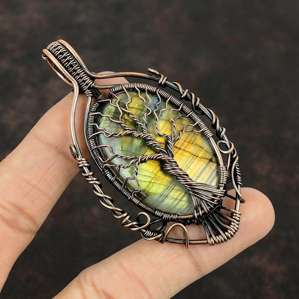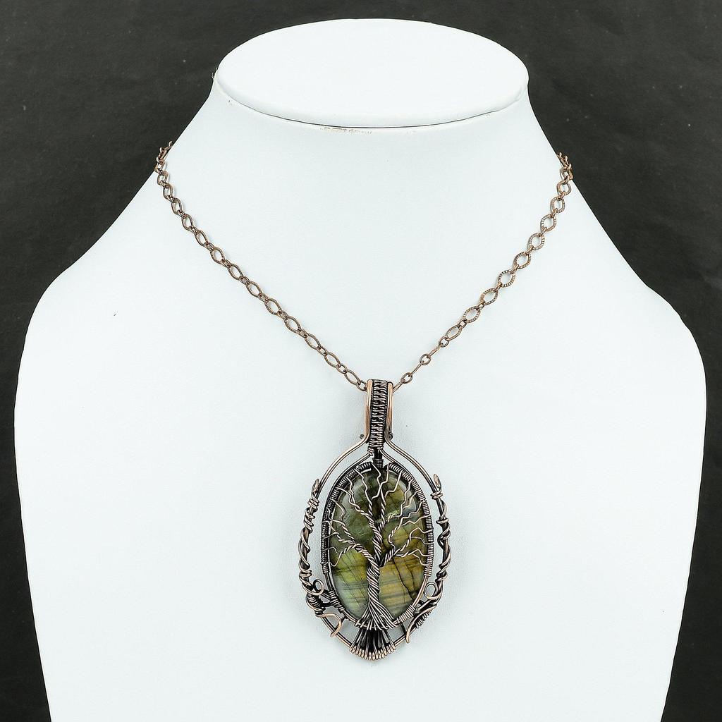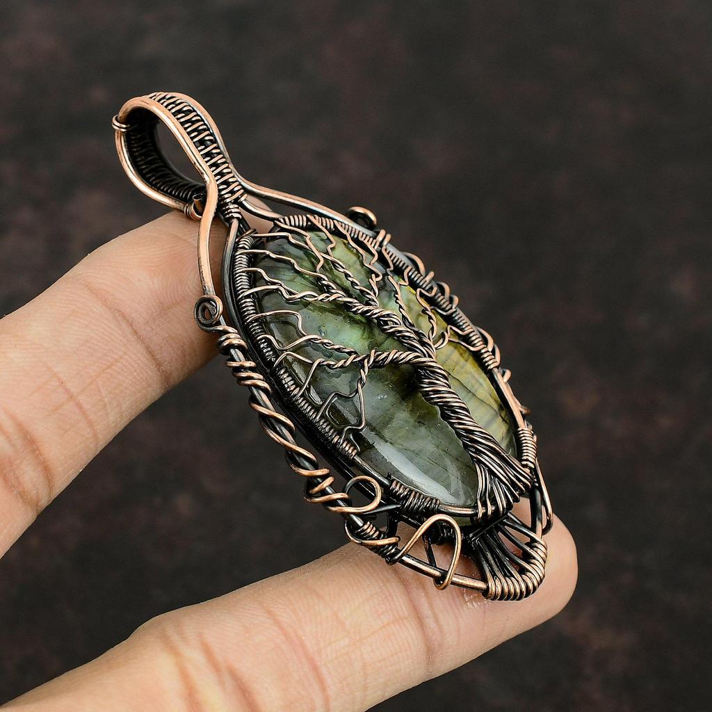 Подвеска из лабрадорита «Дерево жизни», подвеска из медной проволоки с драгоценным камнем, подарок из меди для нее, подвеска из лабрадорита ручной работы