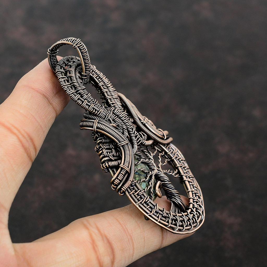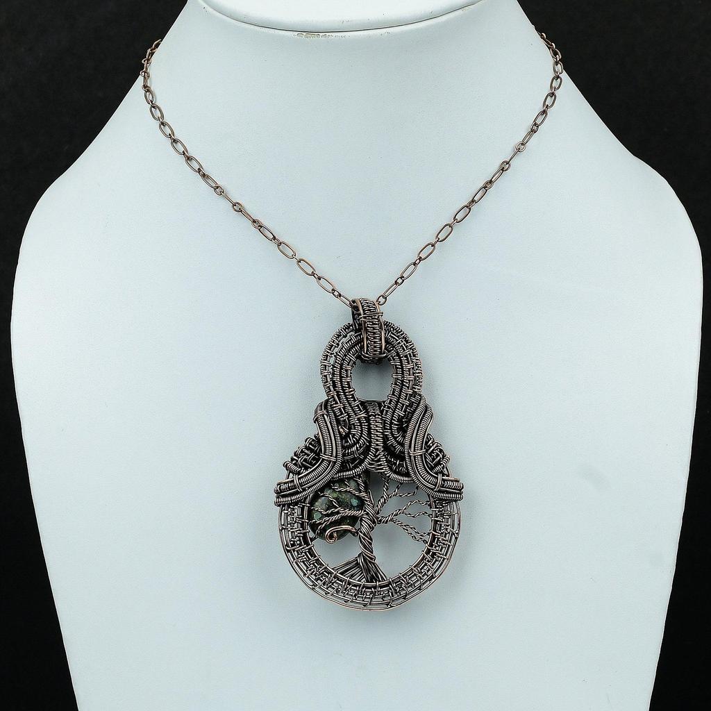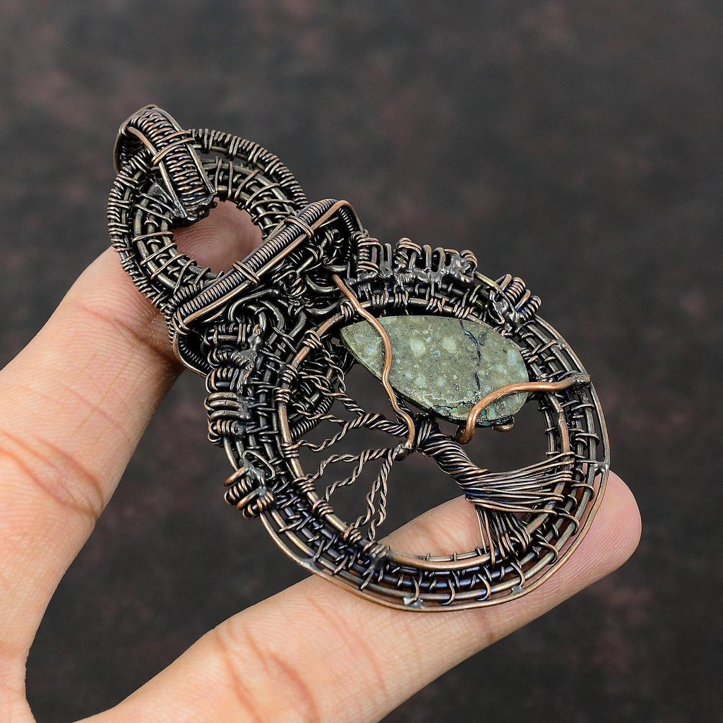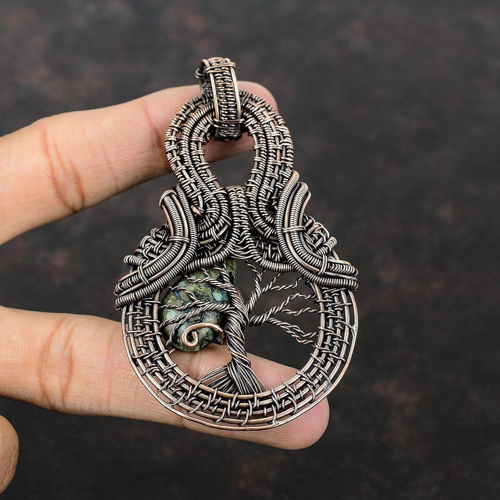 Подвеска «Дерево жизни» из азурита и малахита, подвеска из медной проволоки, обернутая драгоценным камнем, ручная работа, медная бижутерия, проволочная бижутерия, подарок для нее, уникальный кулон