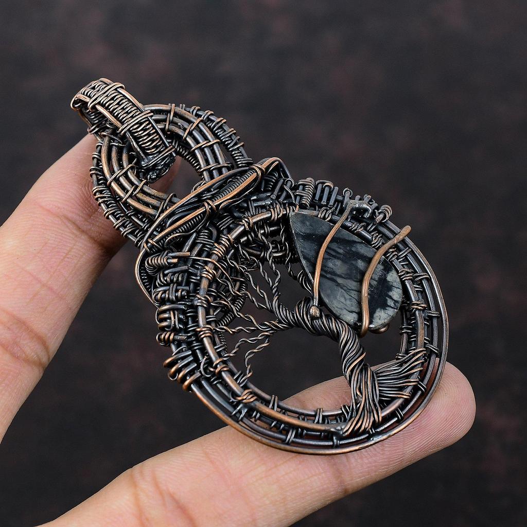 Подвеска «Дерево жизни» из яшмы Пикассо, медная проволока, ювелирное изделие, подвеска ручной работы, проволока, драгоценный камень, подвеска, подарок для женщин, медные украшения