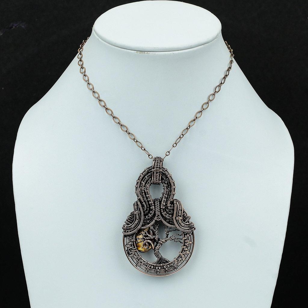 Подвеска из боксита «Дерево жизни», обернутая медной проволокой, ювелирное изделие, драгоценный камень, кулон ручной работы, обернутая медной проволокой, подарок для матери, дизайнерские ювелирные изделия