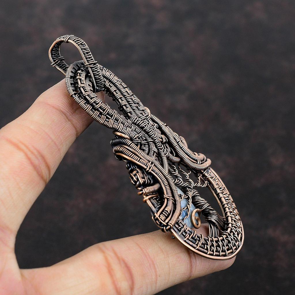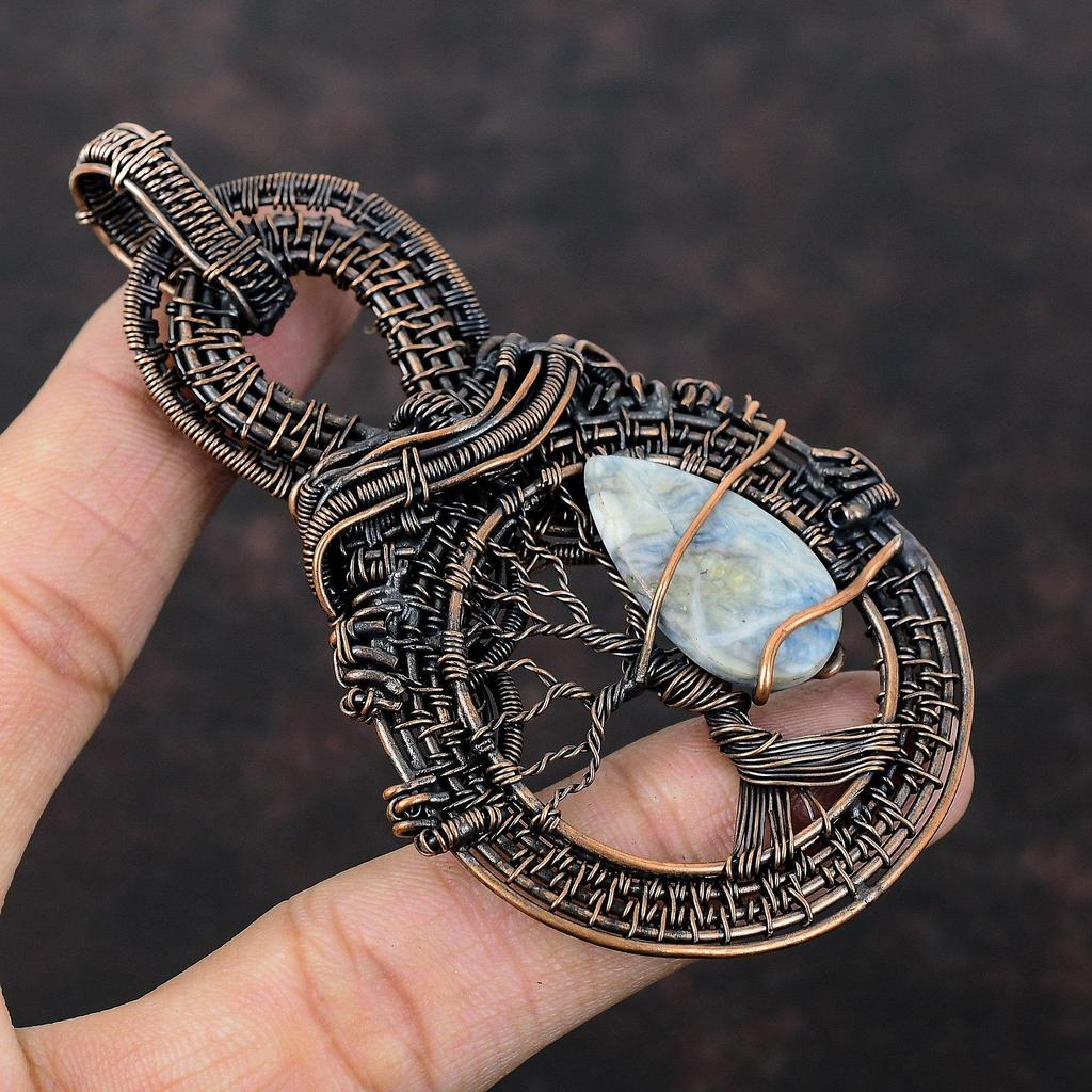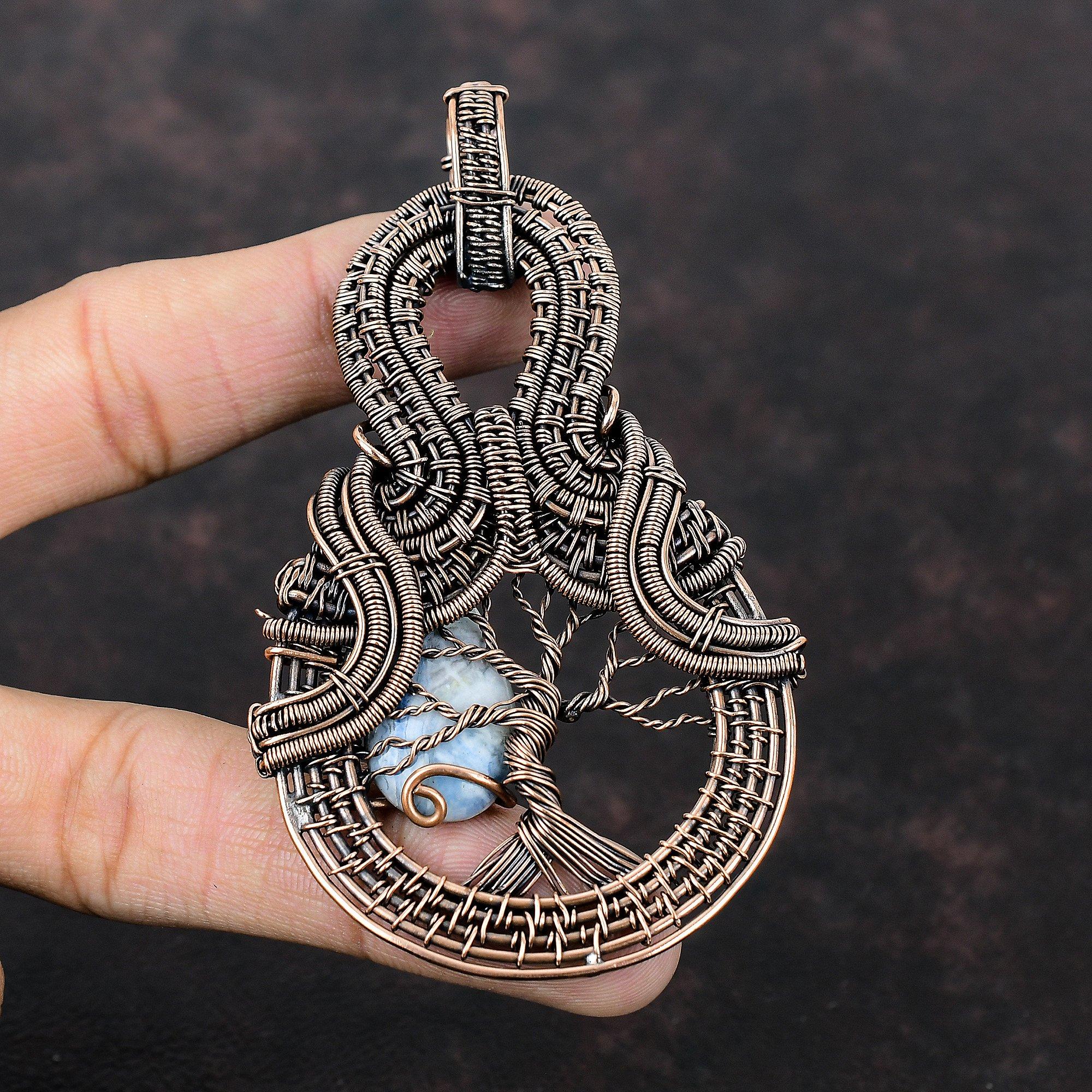 Подвеска из синего шеелита «Дерево жизни», обернутая медной проволокой, драгоценный камень, ювелирное изделие ручной работы, достойный кулон, антикварное медное ювелирное изделие, подарок для него