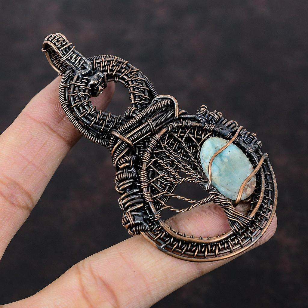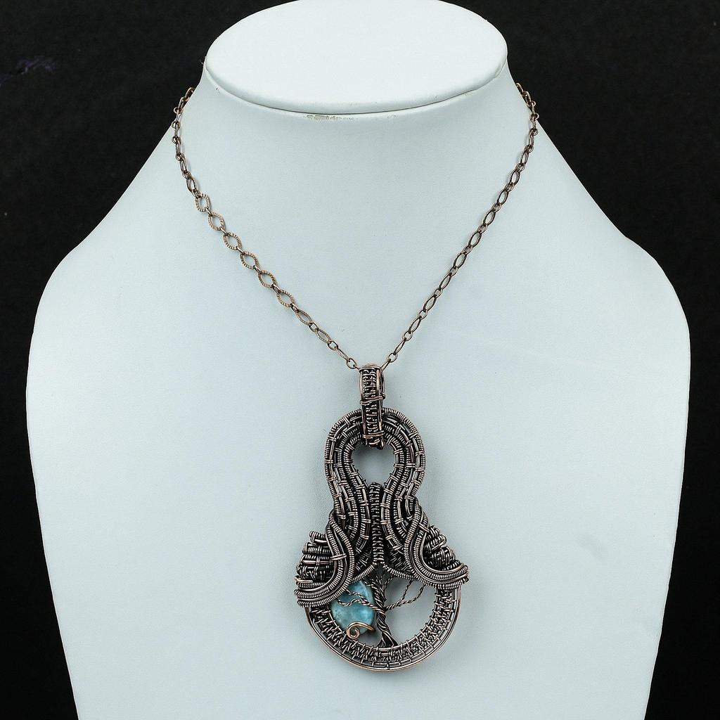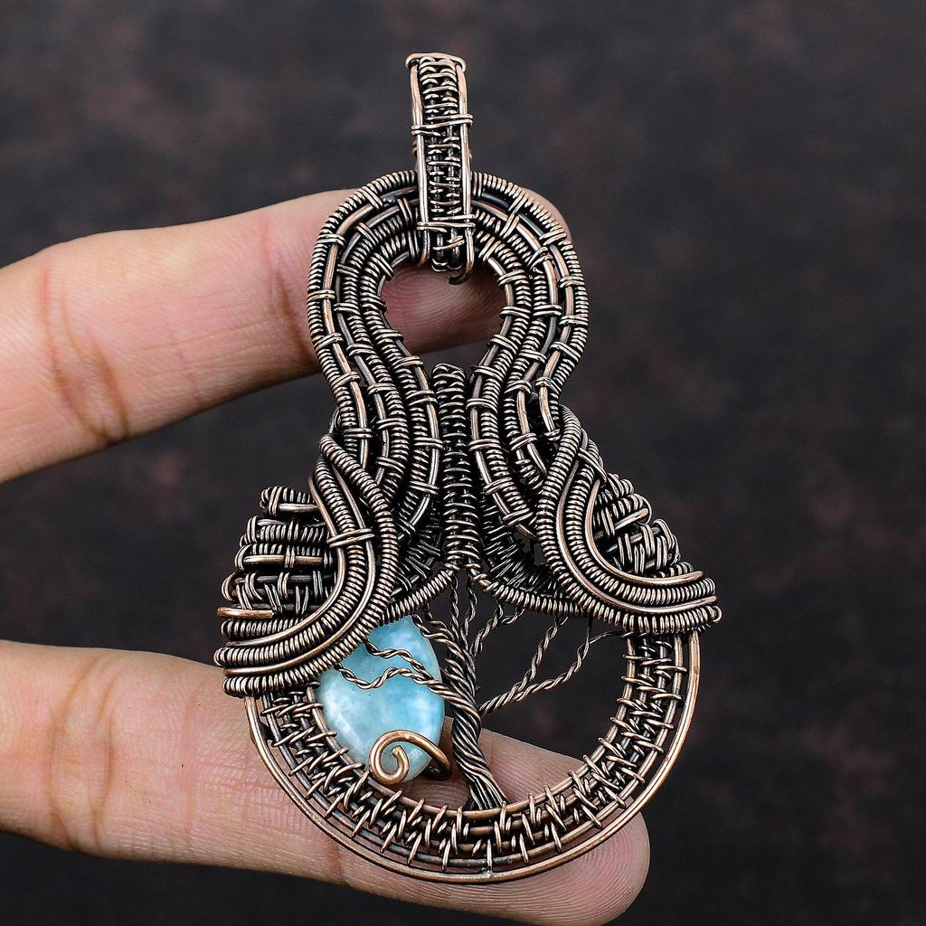 Подвеска «Дерево жизни» с ларимаром, медная проволока, подвеска с драгоценным камнем, медные украшения, подвеска ручной работы «Дерево жизни», ювелирные изделия в подарок маме