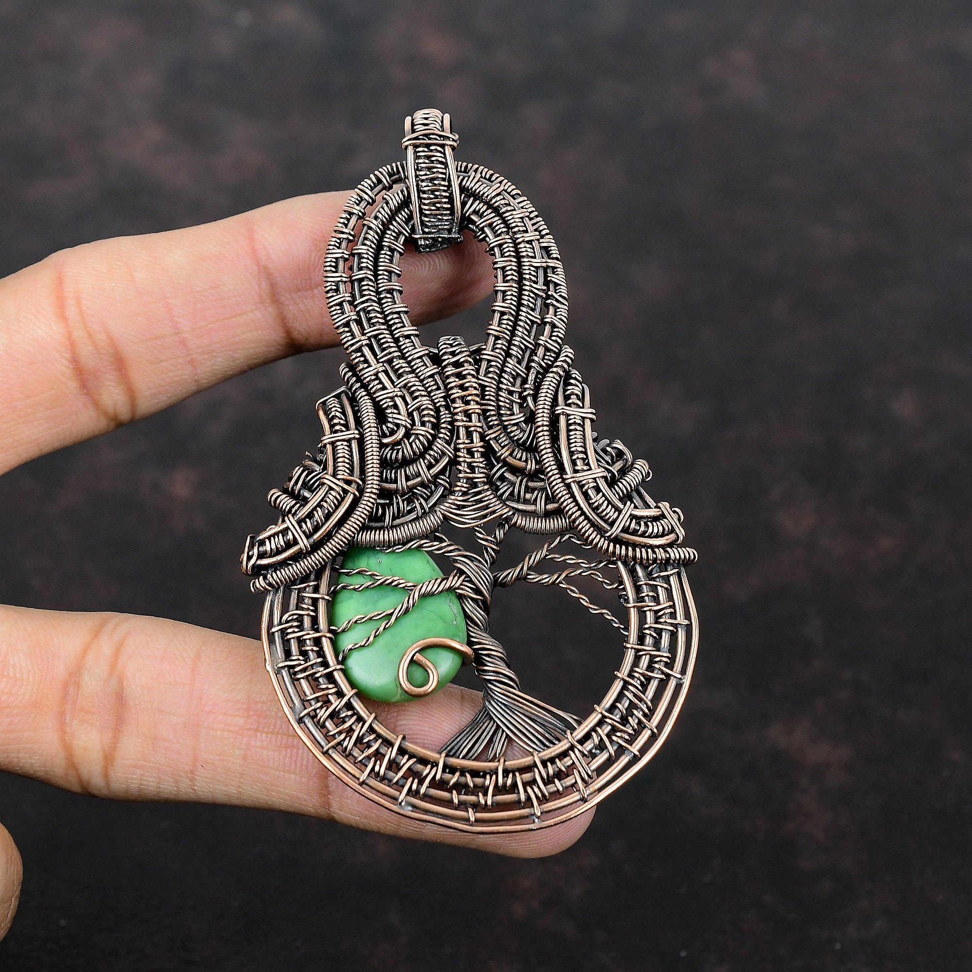 Tree Of Life Chrysocolla Pendant Copper Wire Wrapped Pendant Copper Jewelry Real Gemstone Handmade Pendant Wire Wrap Jewelry Gift For Friend