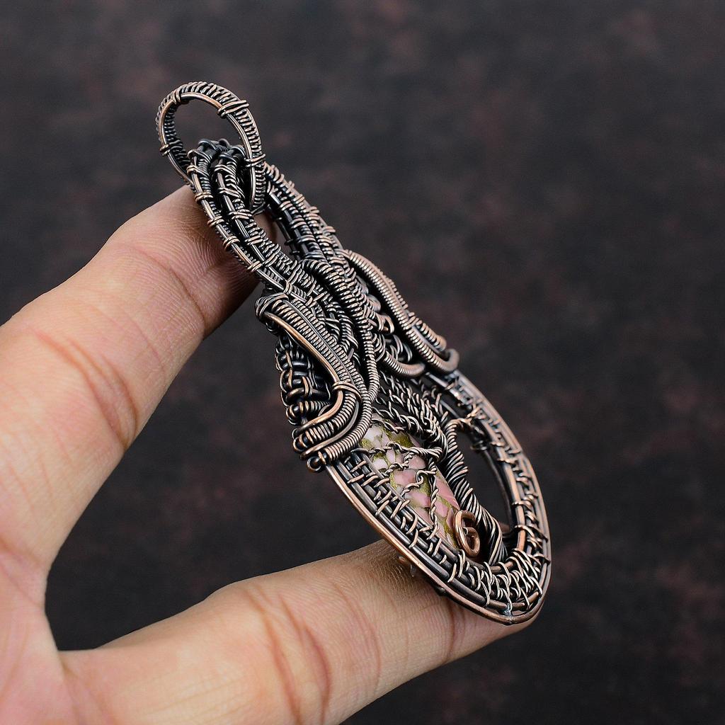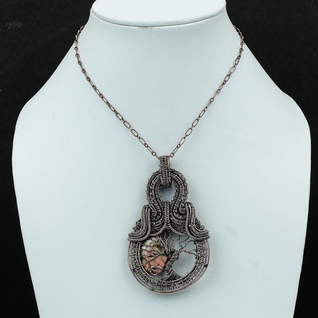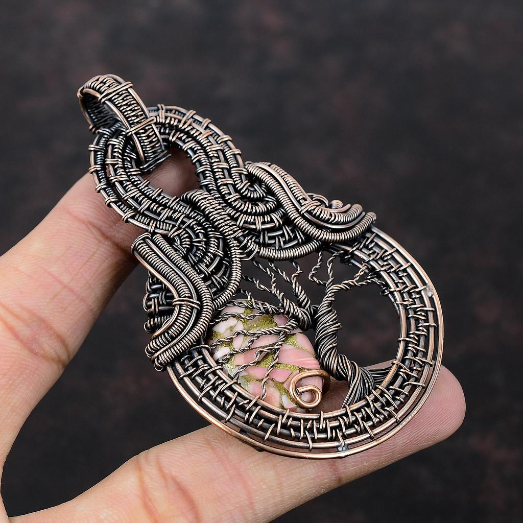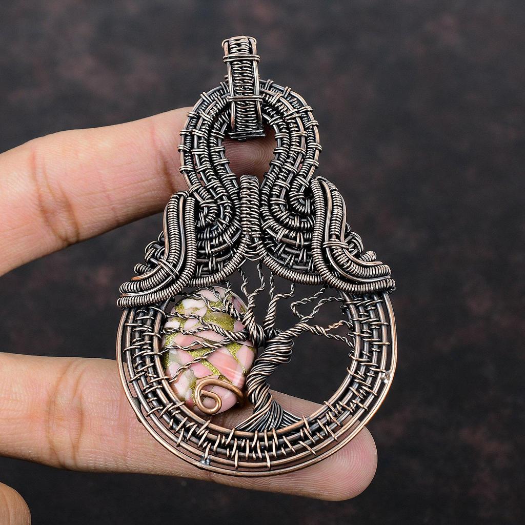 Дерево жизни Медный розовый опаловый кулон, обернутый медной проволокой, ювелирные изделия из драгоценных камней, кулон ручной работы с камнем по дате рождения, медные ювелирные изделия, подарок для женщин