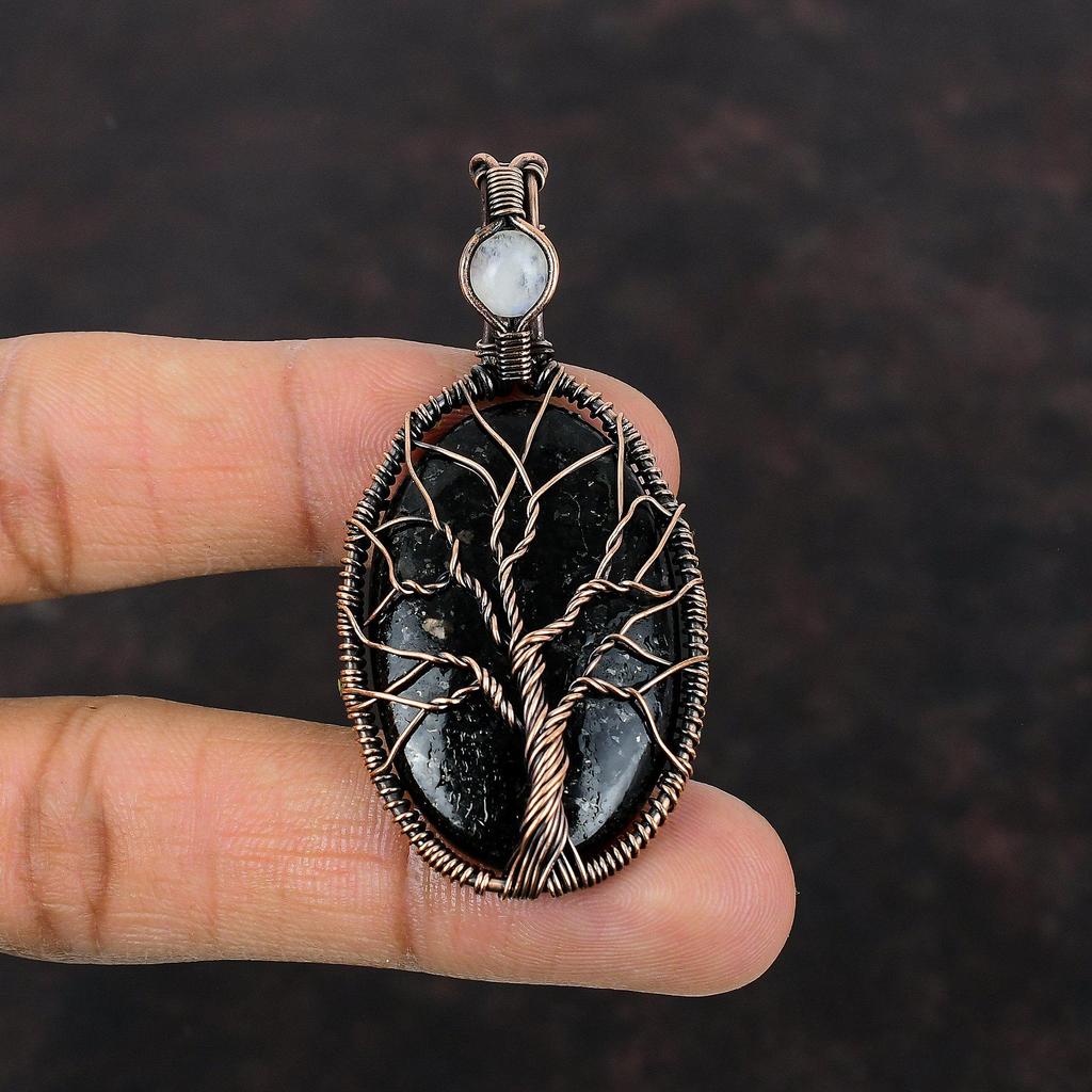 Подвеска из нууммита «Дерево жизни», подвеска из медной проволоки, обернутая драгоценным камнем, ручная работа, обернутая медной проволокой, ювелирное украшение в подарок для нее, подвеска из радужного лунного камня