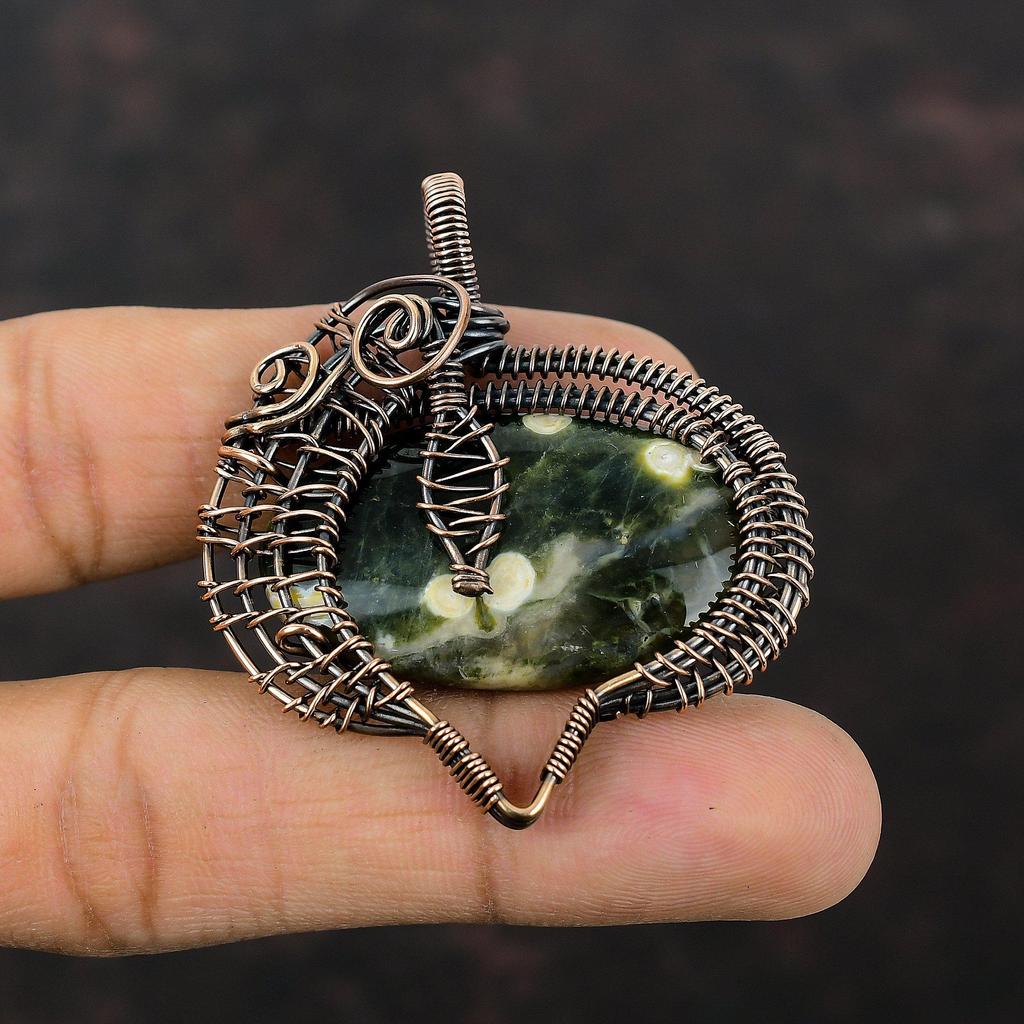 Ocean Jasper Pendant Copper Wire Wrapped Real Gemstone Pendant Copper Jewelry Handmade Pendant Wire Wrap Jewelry Anniversary Gift For Bridal