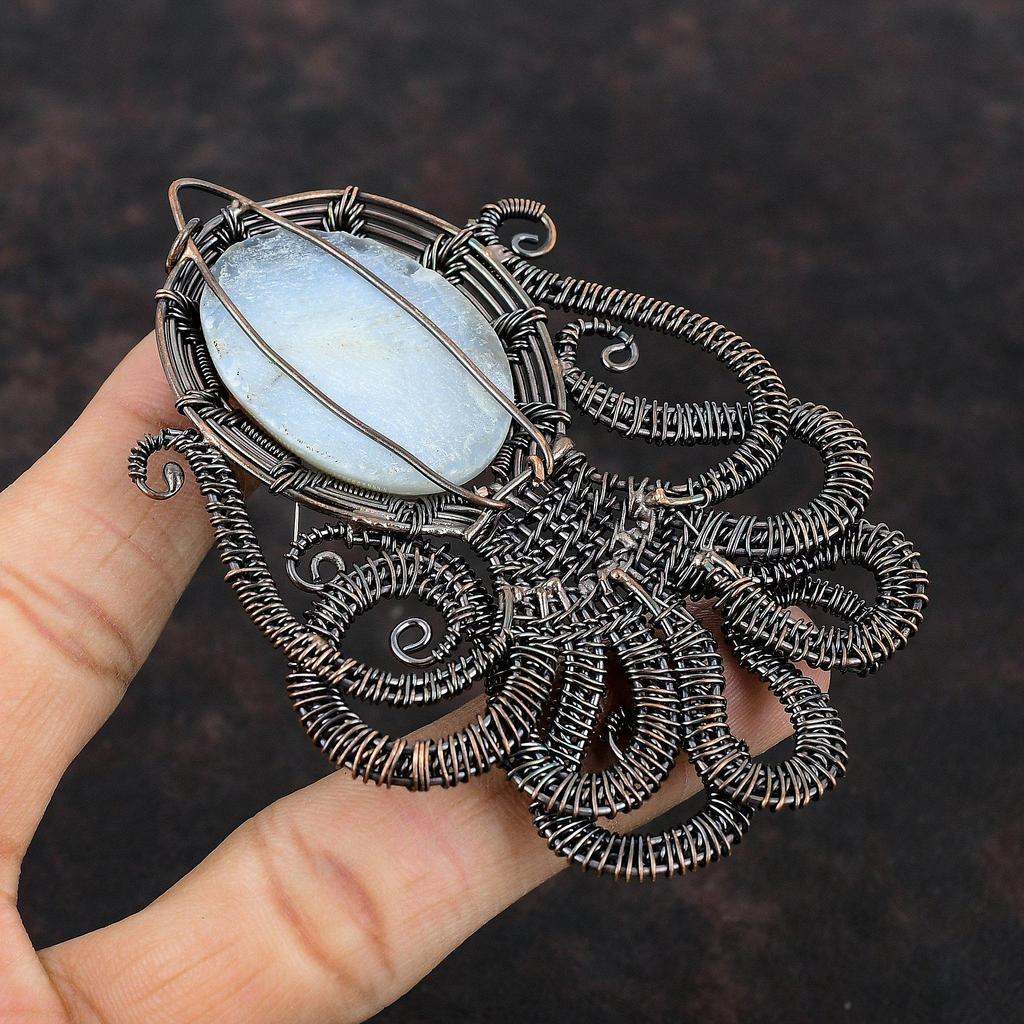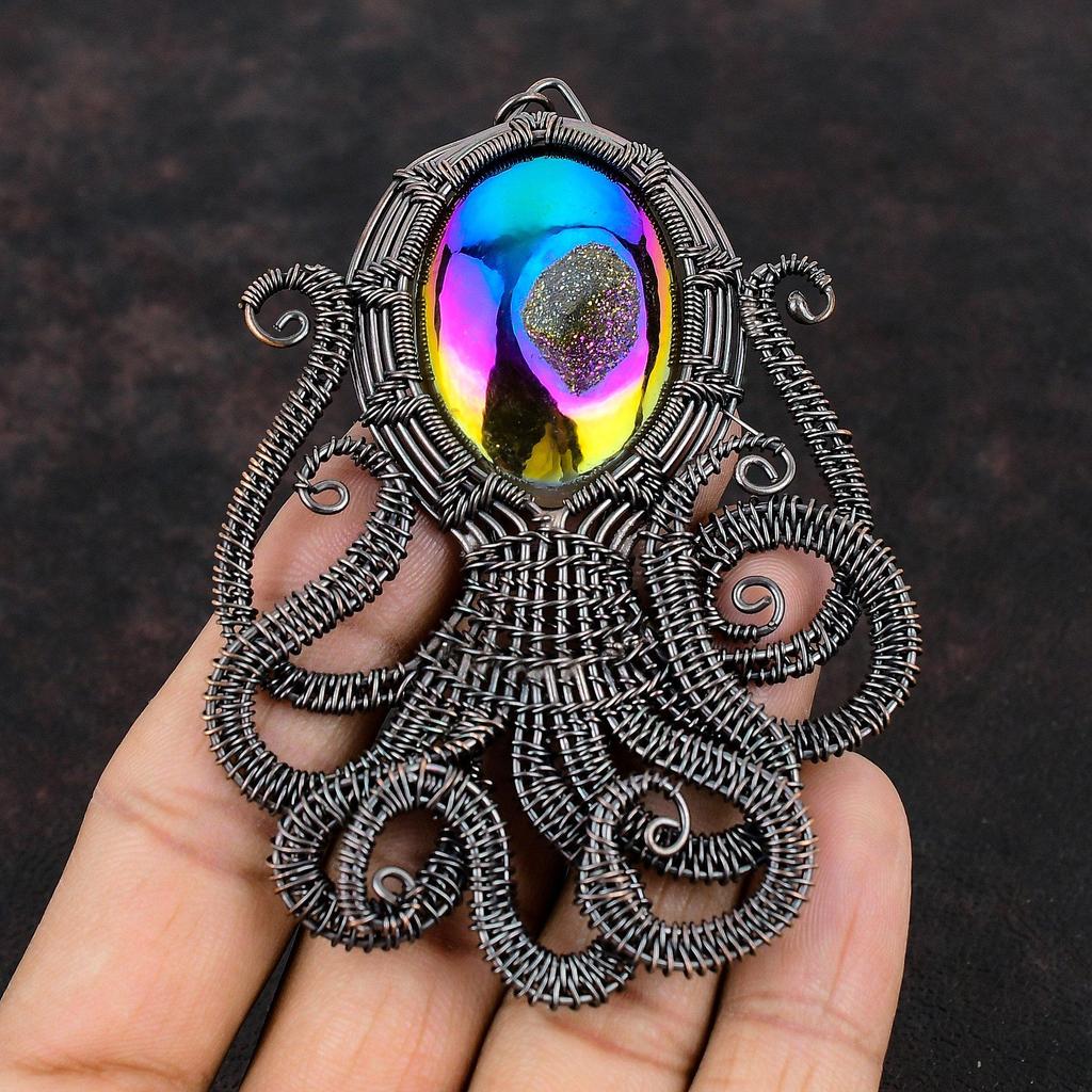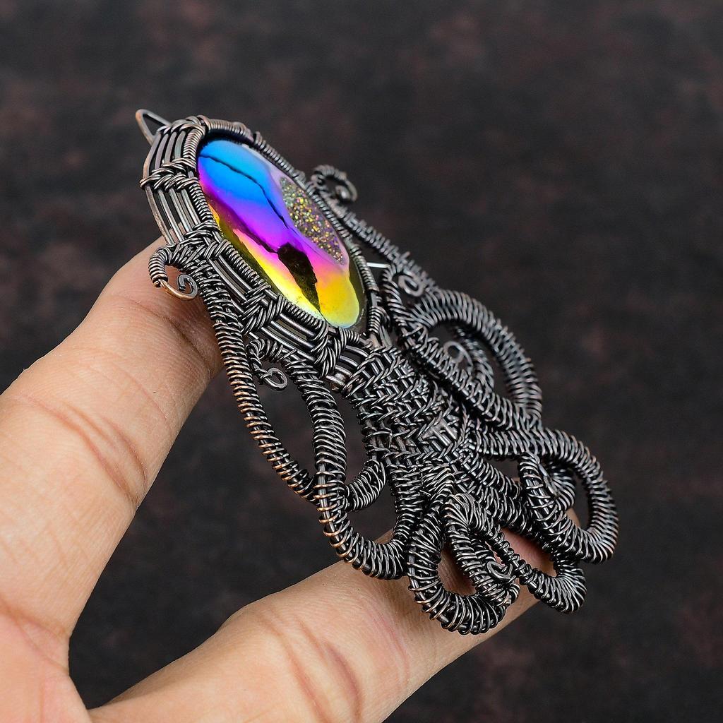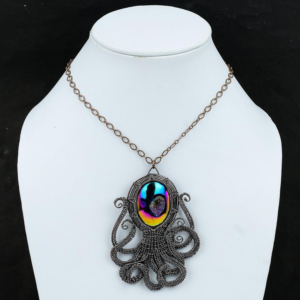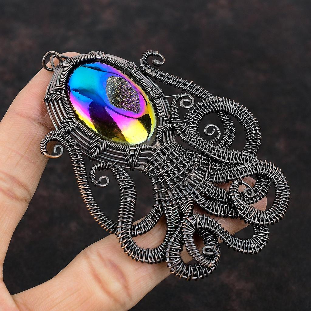 Подвеска Осьминог Титан Друза Подвеска, обернутая медной проволокой Драгоценный камень Дизайнерская подвеска Обернутая Подвеска ручной работы Украшения из медной проволоки