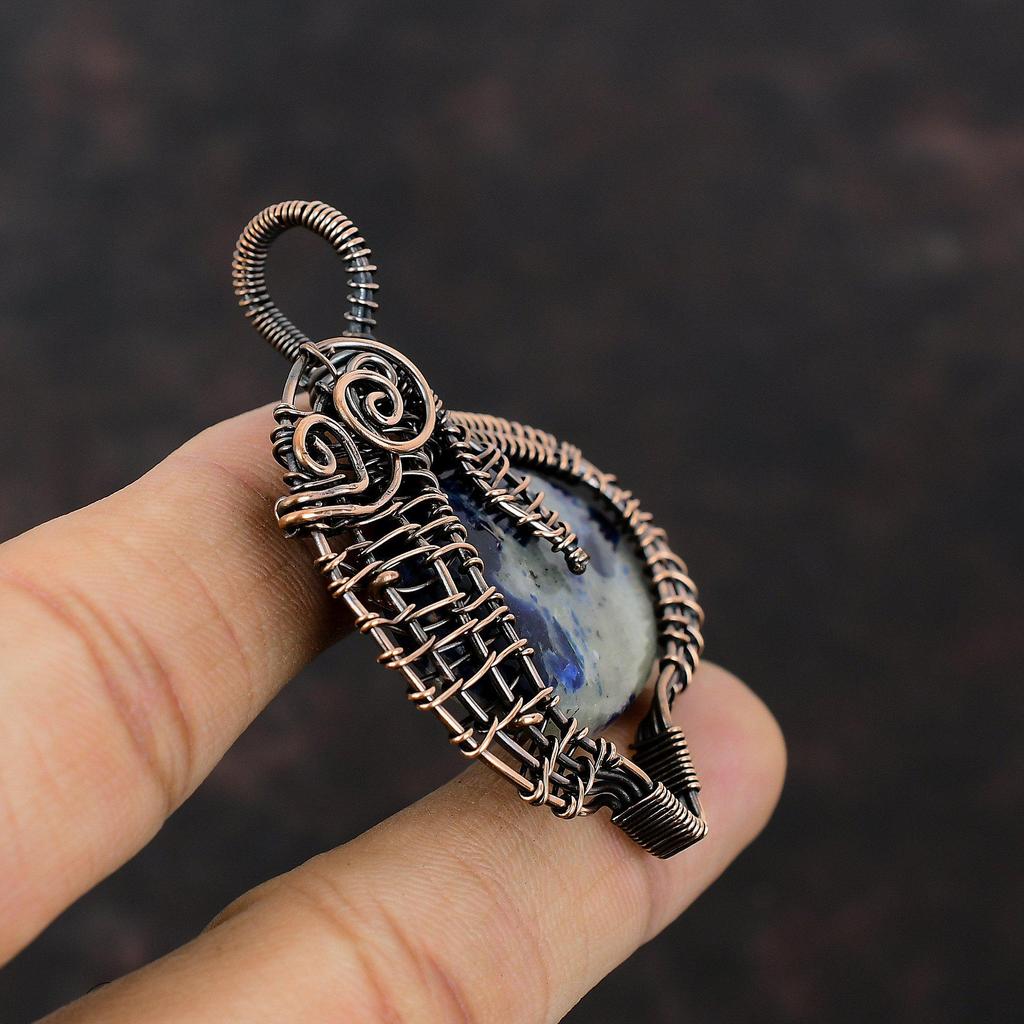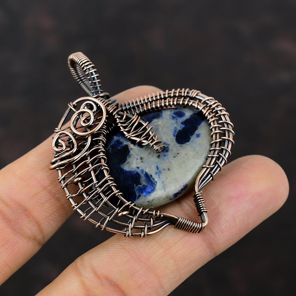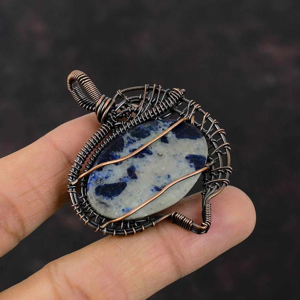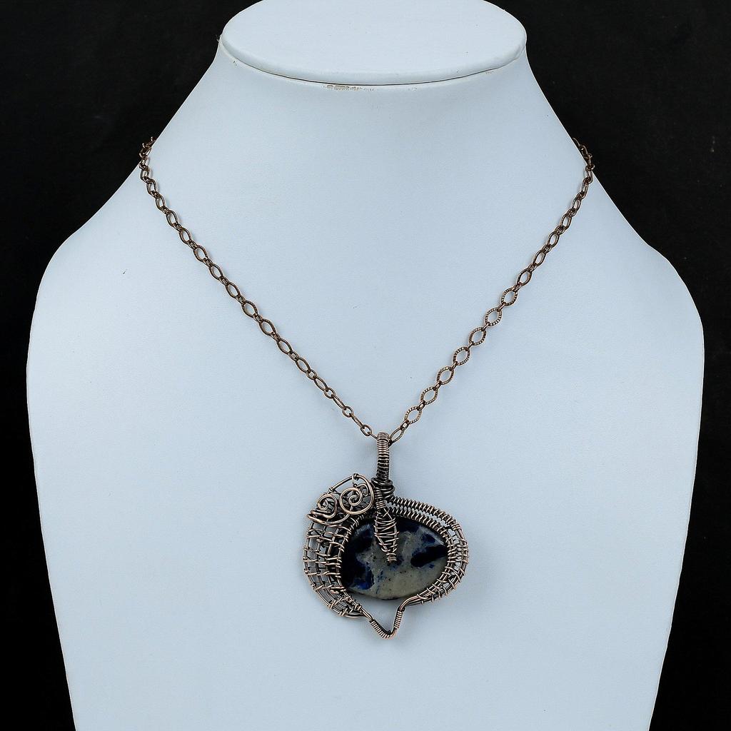 Подвеска из драгоценного камня содалит, подвеска из медной проволоки, ручная работа, приличный кулон, подвеска из медной проволоки, ювелирное изделие в подарок маме, кулон из лечебного камня