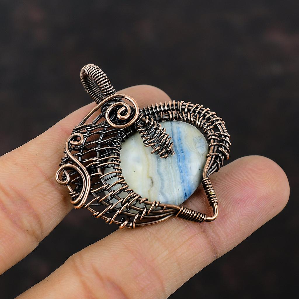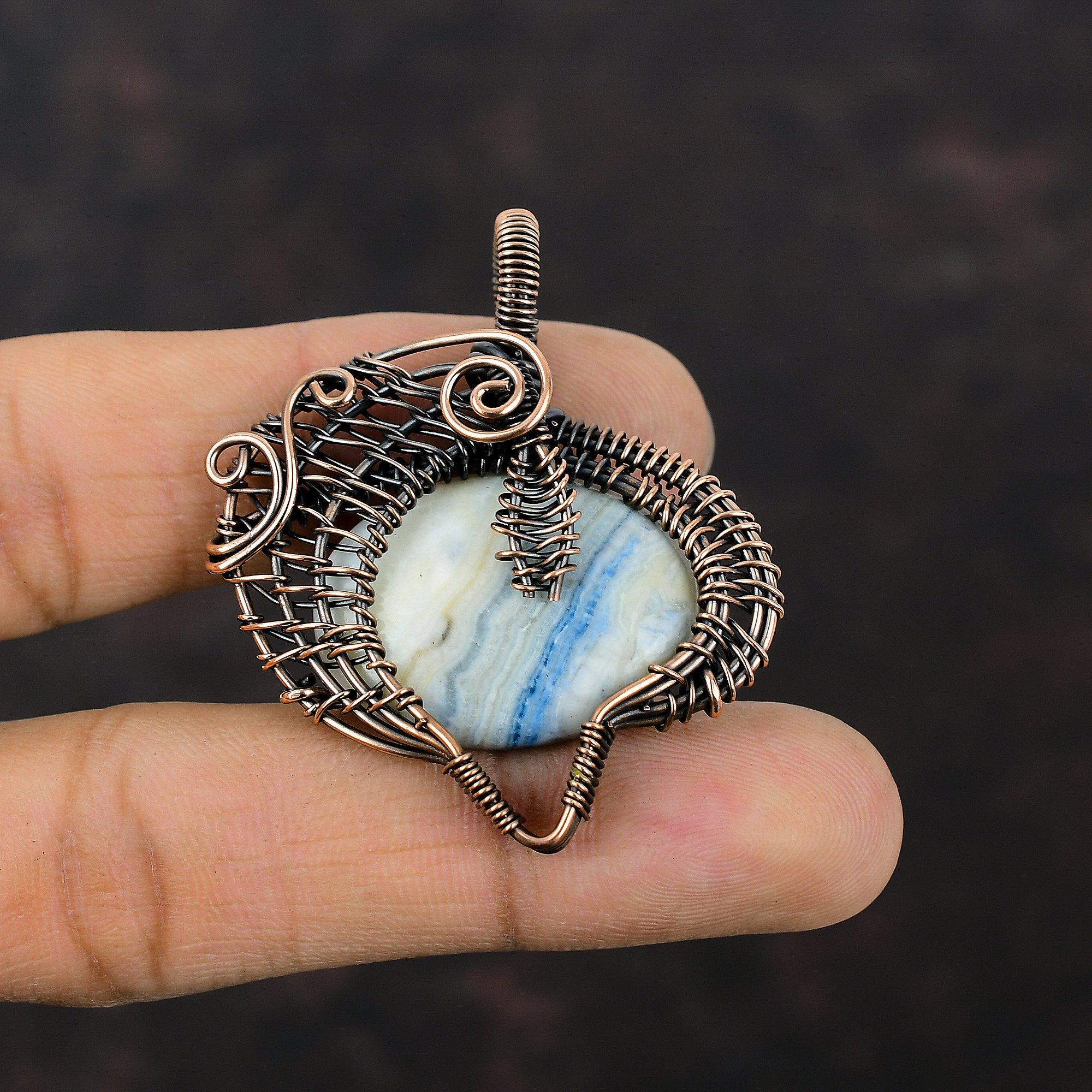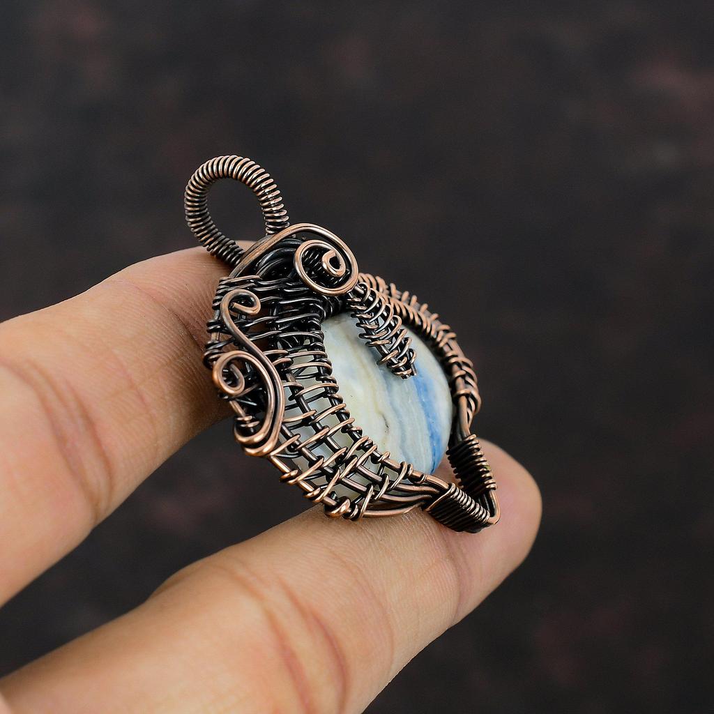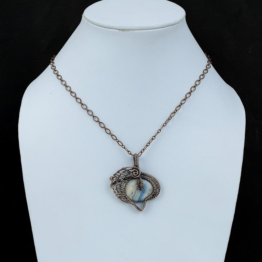 Голубой шеелитовый кулон, обернутый медной проволокой, стильное ювелирное изделие из драгоценных камней, красивая подвеска ручной работы, обернутая медной проволокой, подарок для нее